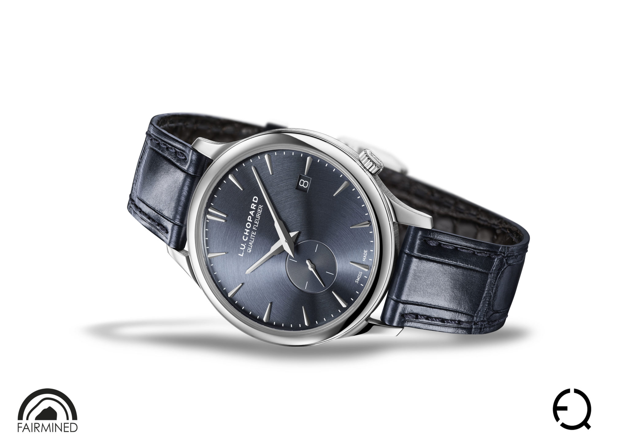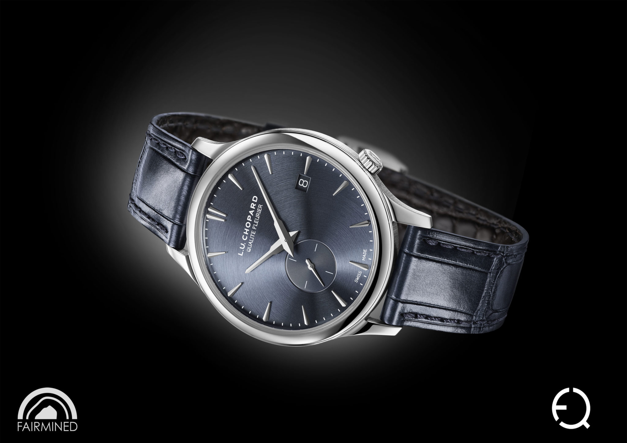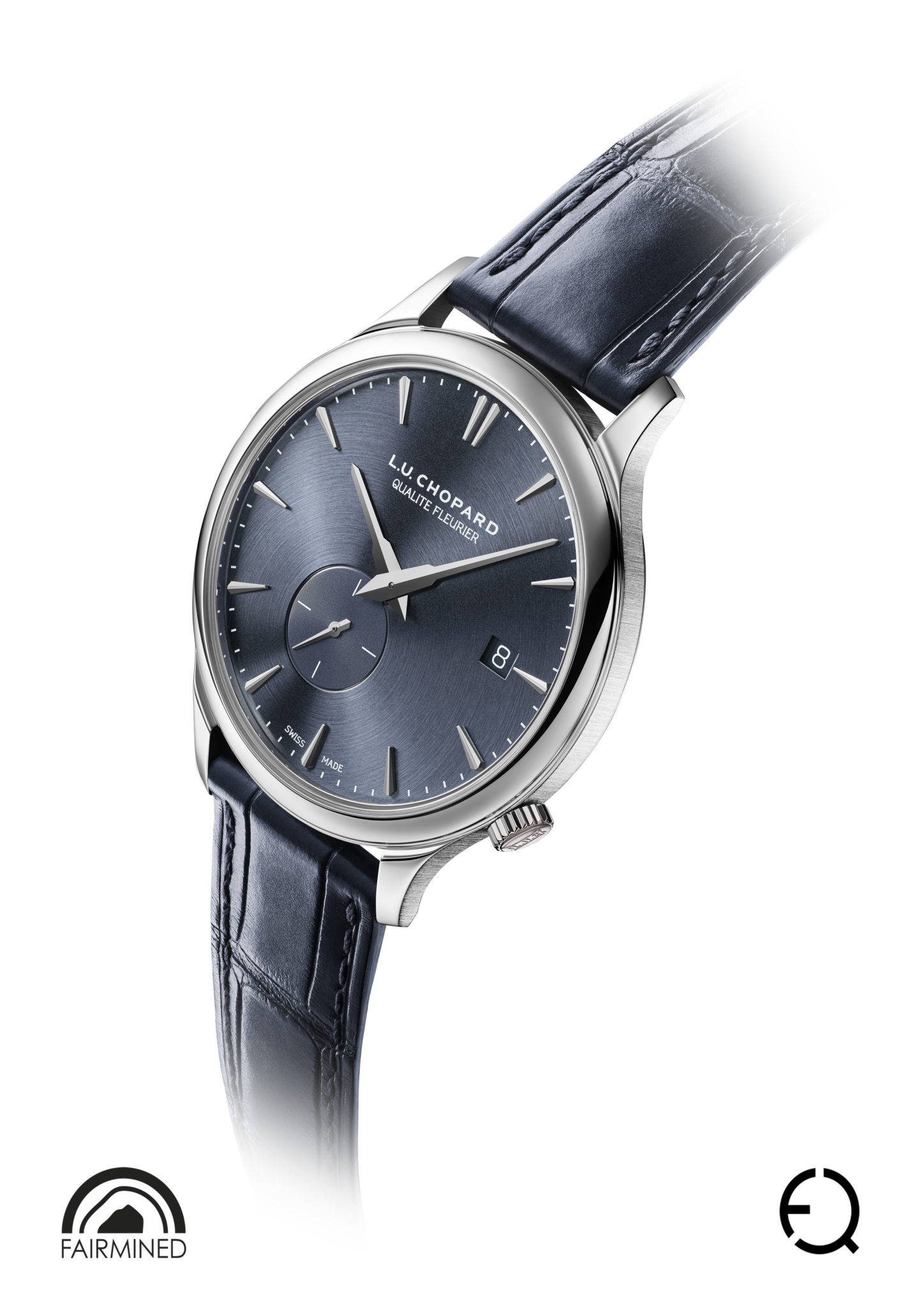 Si les canons de la haute horlogerie sont basés sur la symétrie, ordre esthétique auquel l’œil répond instinctivement, le garde-temps L.U.C XPS Twist QF choisit de s’exprimer sur un autre registre. Il s’amuse du léger décalage de sa couronne et de sa petite seconde, excentrée à 7 heures – une caractéristique des séries Twist de la collection L.U.C. En or 18 carats blanc certifié Fairmined – un or éthique et artisanal rare dont Chopard soutient activement l’extraction – édité à 250 pièces, il joue la carte d’une excentricité maîtrisée et d’une asymétrie élégante. Il bat au rythme du mouvement à remontage automatique L.U.C 96.26-L, équipé d’un micro-rotor en or 22 carats et deux barillets superposés – selon la technologie Chopard Twin. Répondant à divers programmes de certification chers à Chopard, le garde-temps L.U.C XPS Twist QF multiplie les élégances. Qualité Fleurier, certification chronomètre, technologie Chopard Twin à deux barillets, boîte en or éthique certifié Fairmined, il dépasse la prouesse esthétique en y ajoutant la bienfacture la plus aboutie. Finesse au porter, richesse des textures, qualité de fabrication, dimension éthique, rien ne lui manque, pas même un brin d’extravagance.