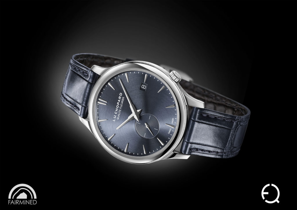 Si les canons de la haute horlogerie sont basés sur la symétrie, ordre esthétique auquel l’œil répond instinctivement, le garde-temps L.U.C XPS Twist QF choisit de s’exprimer sur un autre registre. Il s’amuse du léger décalage de sa couronne et de sa petite seconde, excentrée à 7 heures – une caractéristique des séries Twist de la collection L.U.C. En or 18 carats blanc certifié Fairmined – un or éthique et artisanal rare dont Chopard soutient activement l’extraction – édité à 250 pièces, il joue la carte d’une excentricité maîtrisée et d’une asymétrie élégante. Il bat au rythme du mouvement à remontage automatique L.U.C 96.26-L, équipé d’un micro-rotor en or 22 carats et deux barillets superposés – selon la technologie Chopard Twin.  Répondant à divers programmes de certification chers à Chopard, le garde-temps L.U.C XPS Twist QF multiplie les élégances. Qualité Fleurier, certification chronomètre, technologie Chopard Twin à deux barillets, boîte en or éthique certifié Fairmined, il dépasse la prouesse esthétique en y ajoutant la bienfacture la plus aboutie. Finesse au porter, richesse des textures, qualité de fabrication, dimension éthique, rien ne lui manque, pas même un brin d’extravagance.
