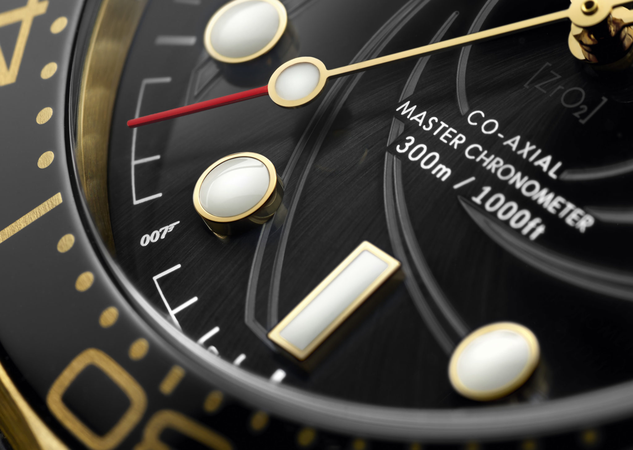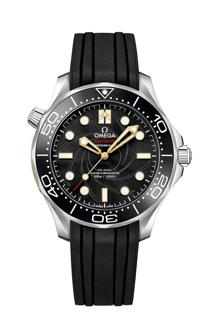 Les deux modèles présentent un cadran satiné spiral en céramique noire avec revêtement spécial en PVD noir et une touche très particulière : un motif de canon de revolver gravé au laser. Un nombre 50 invisible a été placé dans le revêtement en SuperLumiNova de l’index à 10 h, en référence au 50e anniversaire du film Au service secret de Sa Majesté (1969).