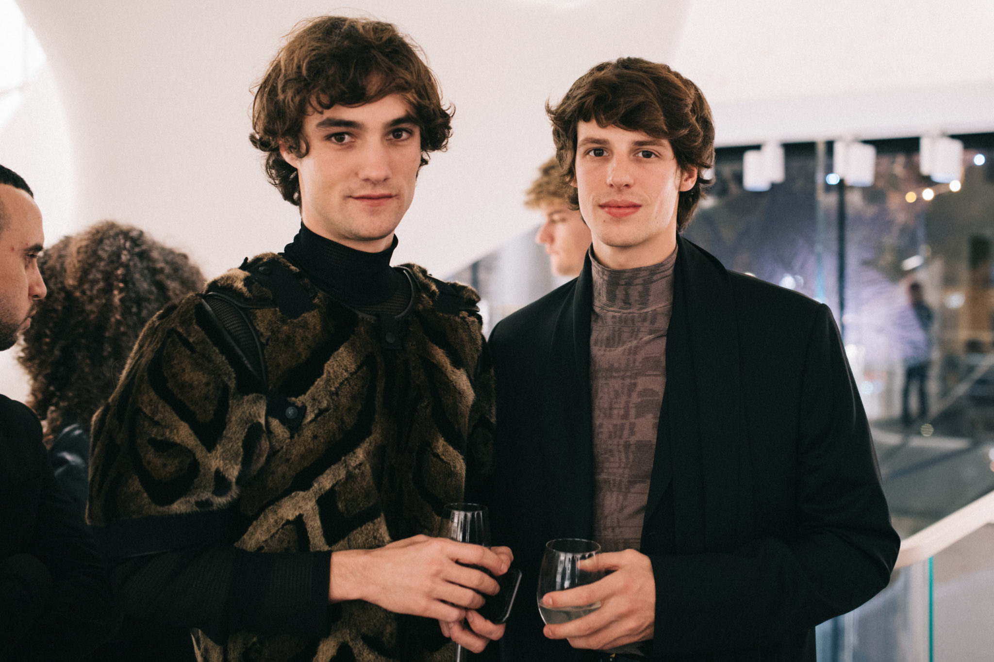Liam Marquant wore a Dior Winter 2019-20 men’s collection brown beaver jacket, a black cotton oversize t-shirt, purple wool pants and burgundy leather boots.