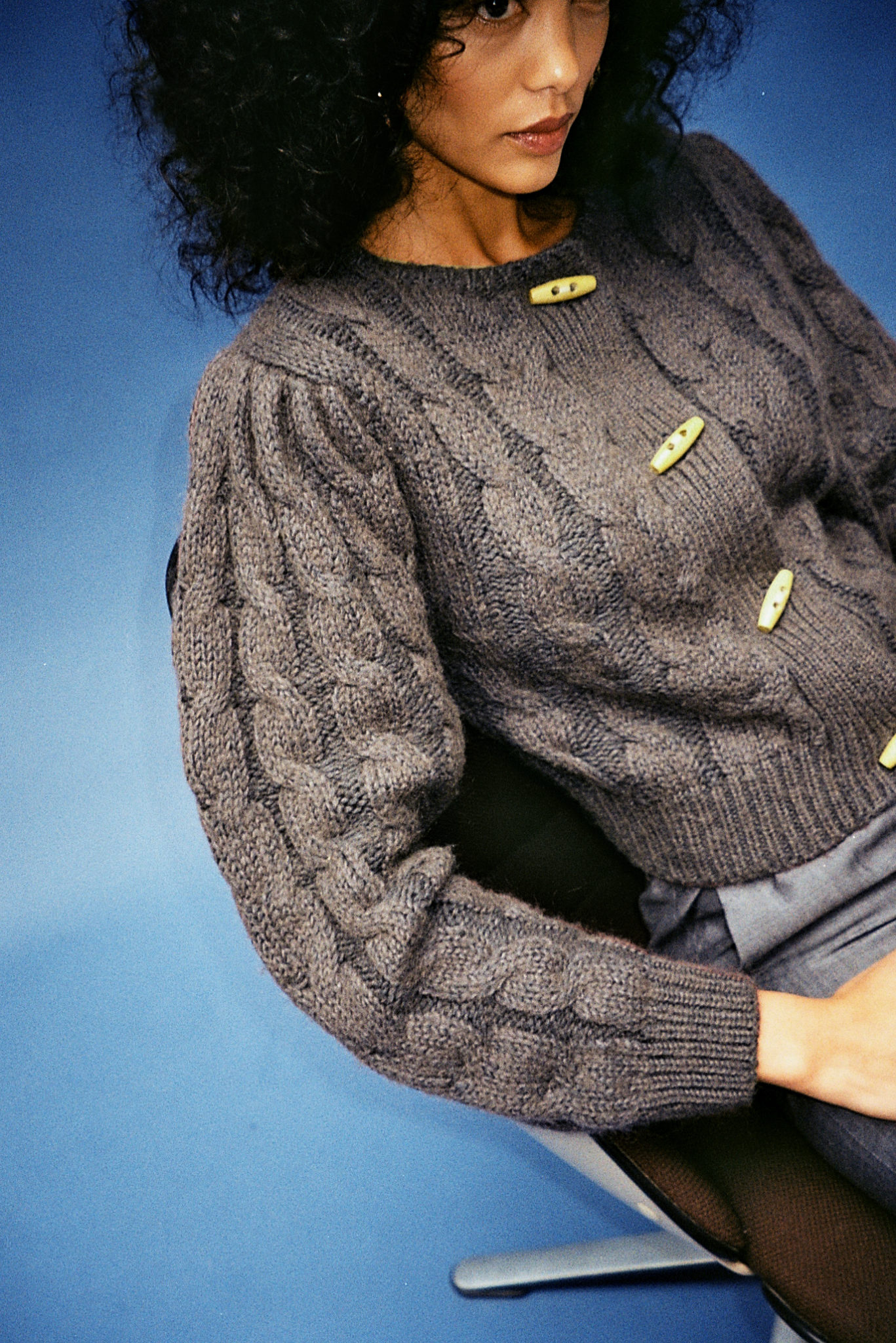 APRÈS LE SUCCÈS DE SES CARDIGANS, MUSIER SIGNE ICI UNE LIGNE DE PULLS ET GILETS EN GROSSES MAILLES QUI JOUE SUR LES VOLUMES ET LES DETAILS.