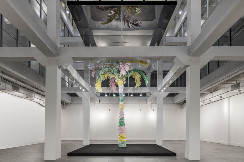 Thom Browne will unveil his first large-scale public artwork on Thursday, December 5th, at The Moore Building during Art Basel Miami Beach. Palm Tree I (2019)—a twenty-one-foot tall palm tree constructed from yellow, green, and pink seersucker, pincord, and gingham oxford—evokes the iconic and unmistakable palette of an American summer. The installation will be curated by Deana Haggag, the President and CEO of United States Artists. Artforum editor-in-chief David Velasco will host a discussion with Thom and the curator at 6:30PM on December 5th.