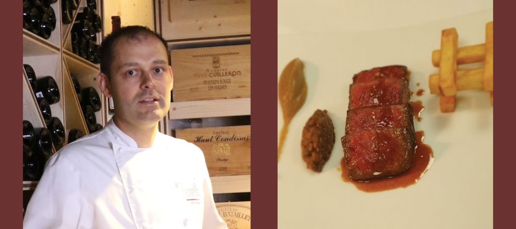 Plat : Faux Filet de Wagyu japonais, duxelle de champignons au soja, pommes Pont Neuf et sauce choron