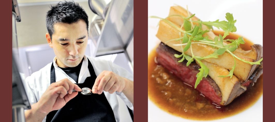 Plat : Pot-au-feu de Wagyu japonais, cèpes, oursins brûlés, navet Tokyo