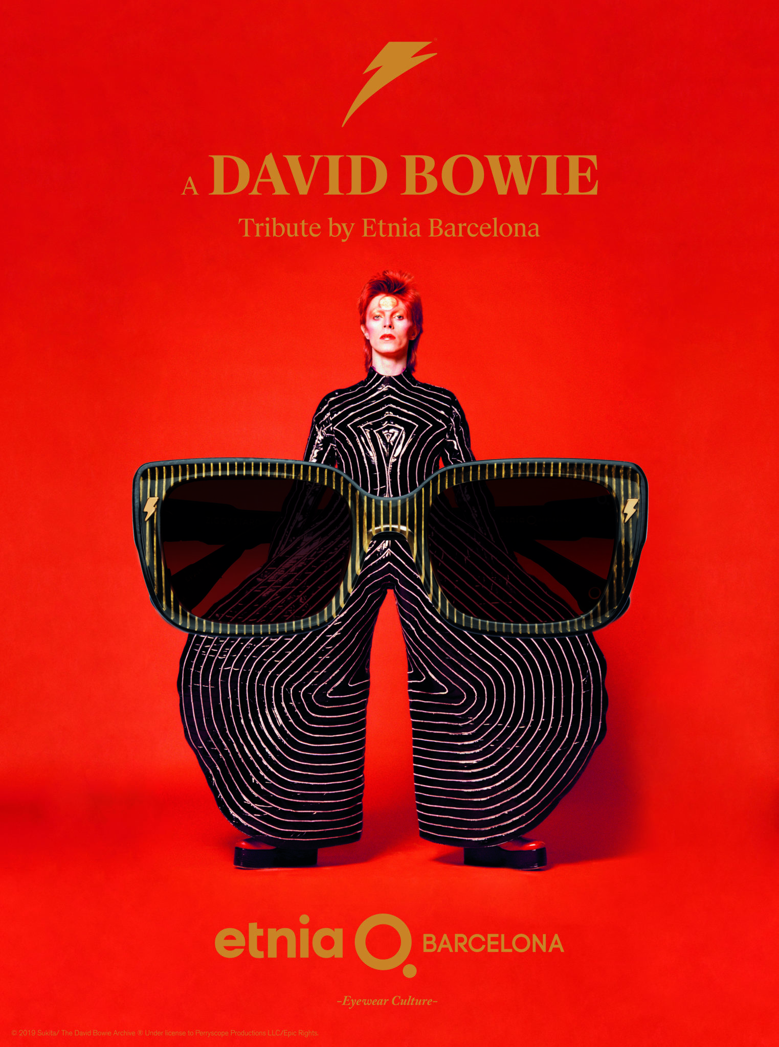 Cette année, la marque a un message très clair à faire passer : prenez le contrôle de ce qui vous rend unique et authentique, et affichez-le avec fierté. C’est un message prononcé haut et fort par la campagne automne/hiver 2019 I’MPERFECT. En réunissant toutes les influen- ces de Bowie, Etnia Barcelona a conçu une collection inédite composée de deux modèles de lunettes de soleil aussi Glam que tendance, et soignée jusque dans les moindres détails inspirés par les deux alter ego les plus importants de la carrière du chanteur : Ziggy Stardust et The Thin White Duke.