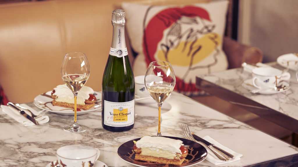 • Au restaurant Le Dalí au Meurice : dégustez un délicieux Tea-Time et découvrez un rituel de service exclusif autour de Veuve Clicquot Demi-Sec, servi en carafe Baccarat.