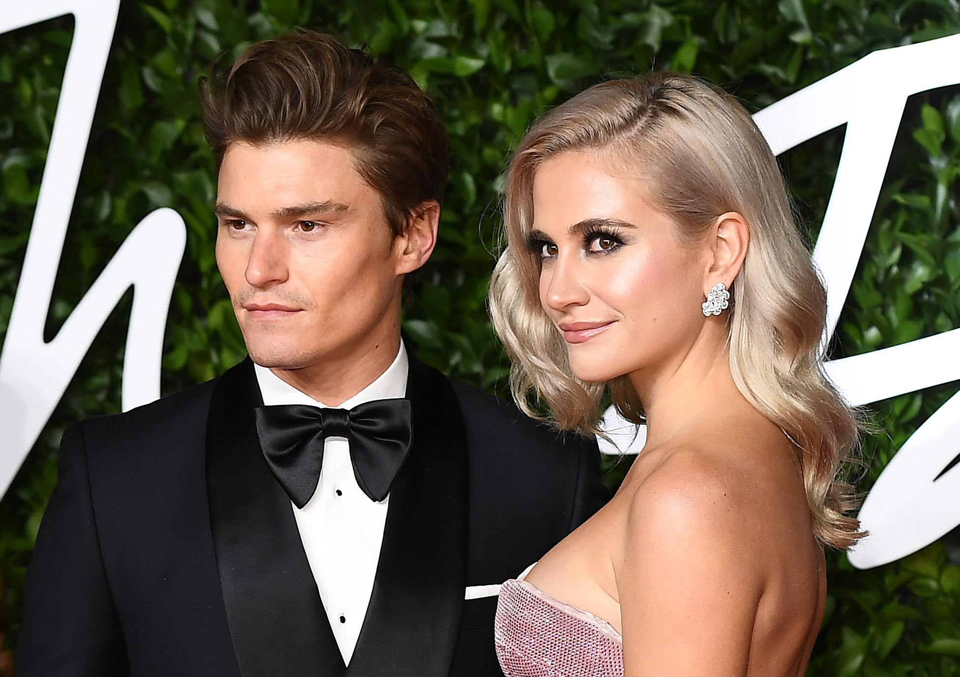 - LONDON, ENGLAND – DECEMBER 02: Pixie Lott (R) and Oliver Cheshire arrive at The Fashion Awards 2019 held at Royal Albert Hall on December 02, 2019 in London, England. (Photo by Jeff Spicer/BFC/Getty Images)
