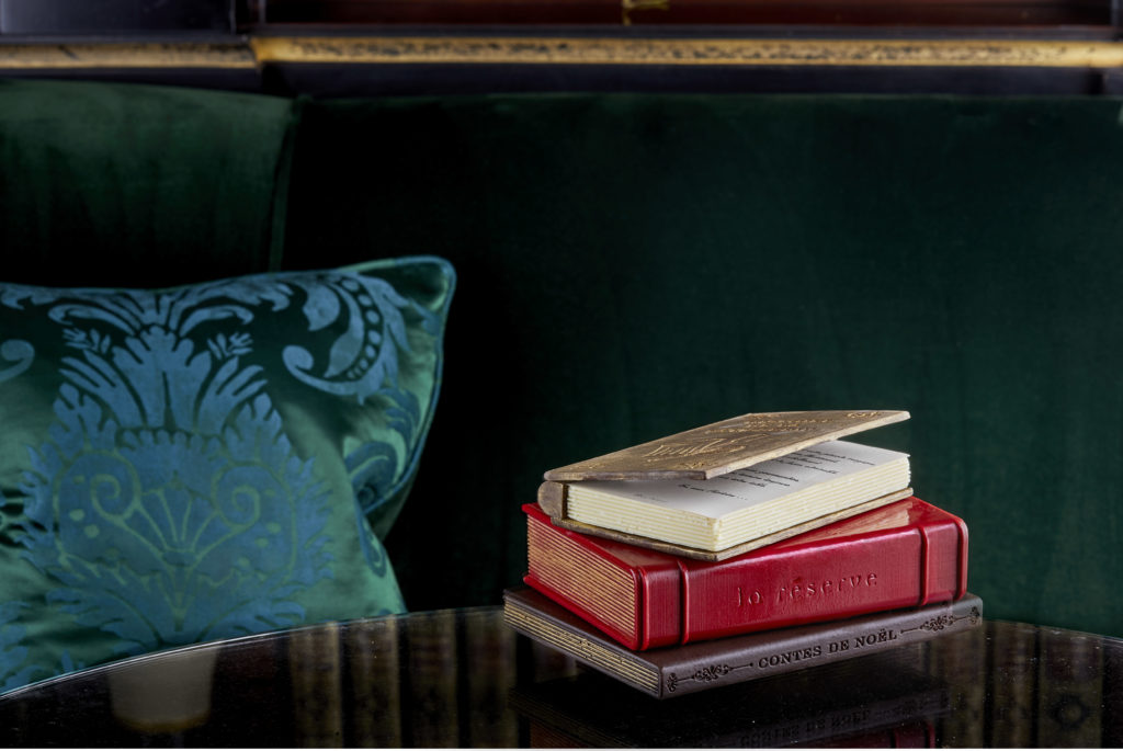A l’intérieur, les pages ont laissé place à un coffret de ravissants chocolats parfumés au thé et aux agrumes, à déguster au moment du café pour terminer les agapes festives en légèreté. Quant aux deux livres du dessous, ils composent ensemble une bûche raffinée, où l’on retrouve le parfum des agrumes, du chocolat et du thé noir aux notes boisées, trois arômes emblématiques d’un Noël de rêve au coin du feu dans la bibliothèque. Une création originale qui incarne plus que tout autre la pâtisserie d’auteur.