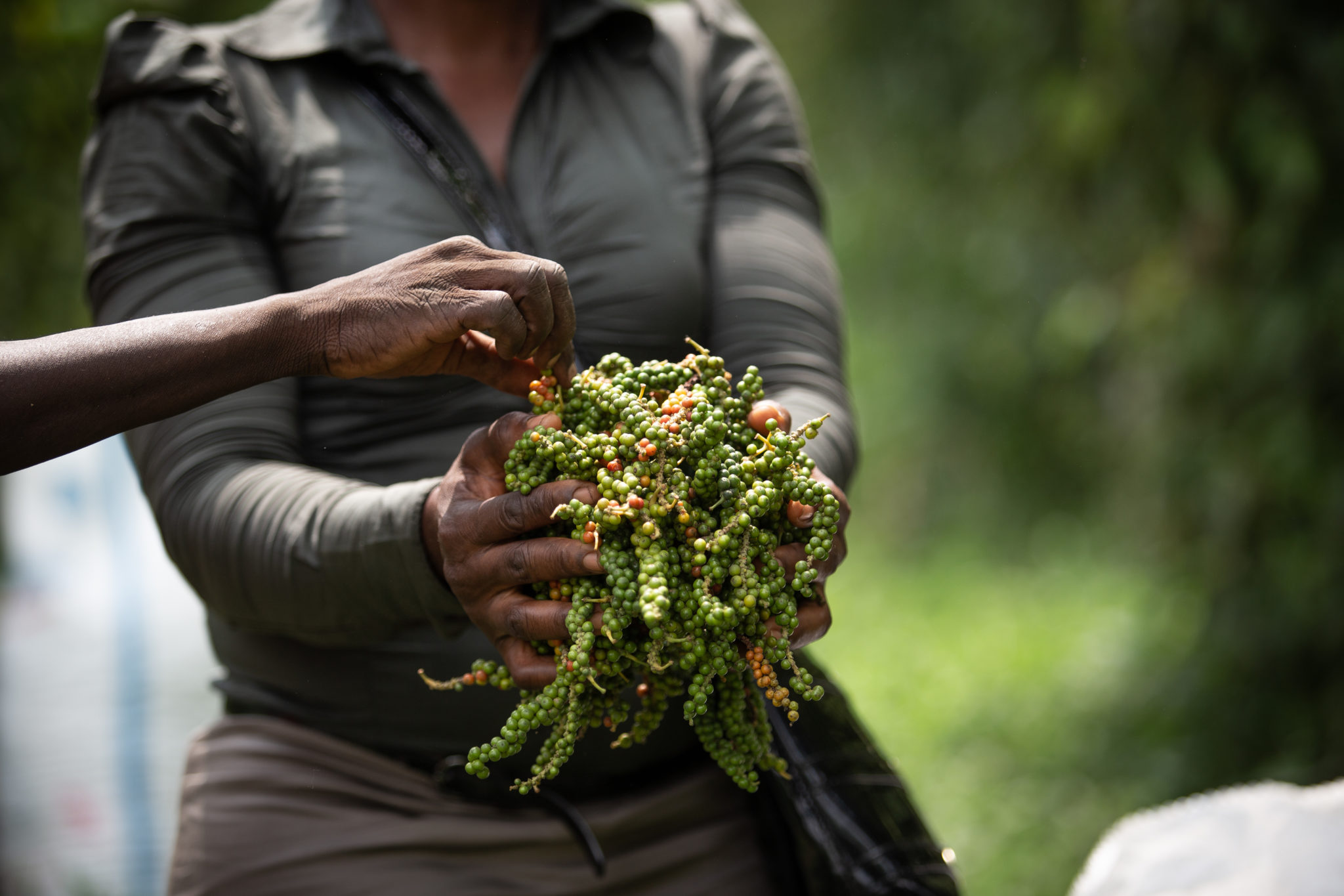 Le poivre blanc de Penja pousse dans la province de Moungo auCameroun. Il est récolté à maturité puis séché naturellement au soleil.Toutes les étapes de production (récolte, macération, nettoyage, séchage et tri) sont réalisées manuellement, le plus souvent parles femmes, expertes dans leur village. Le poivre blanc de Penja bénéficie d’une renommée mondiale dans l’univers gastronomique.En 2014, il été le premier produit d’Afrique à obtenir le statut d’espèce protégée. Le sol volcanique sur lequel il se développe, lui confère ses notes aromatiques de menthe et de camphre. Son processus unique d’« épluchage » libère une puissance intense et durable denotes aromatiques.