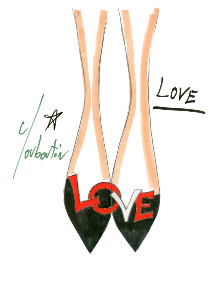 Bottinos © Jean-Vincent Simonet – Croquis du modèle Love © Christian Louboutin – Portrait de Christian Louboutin au Palais de la Porte Dorée – Wet Seal, Allen Jones, 1966 – © D.R