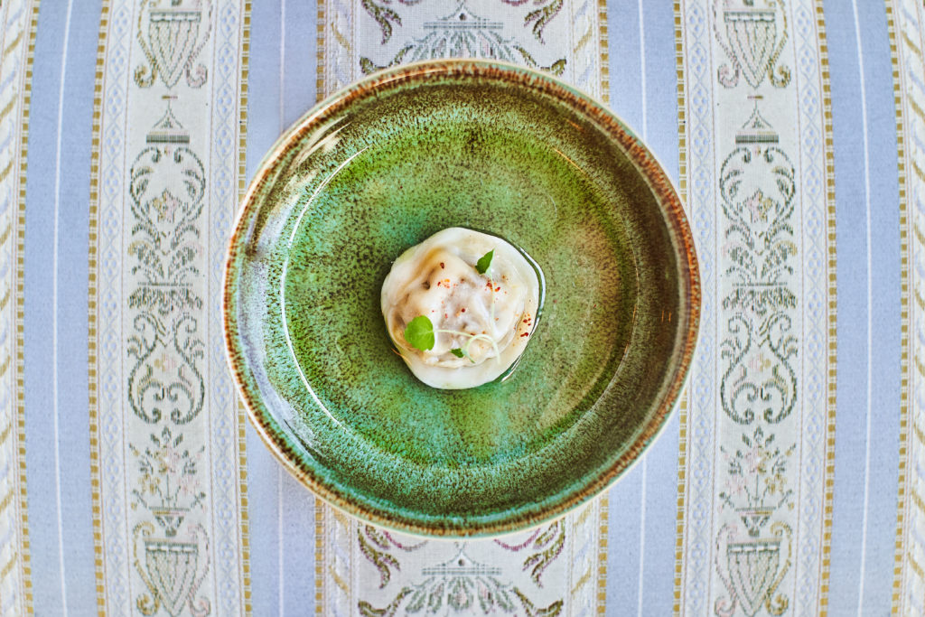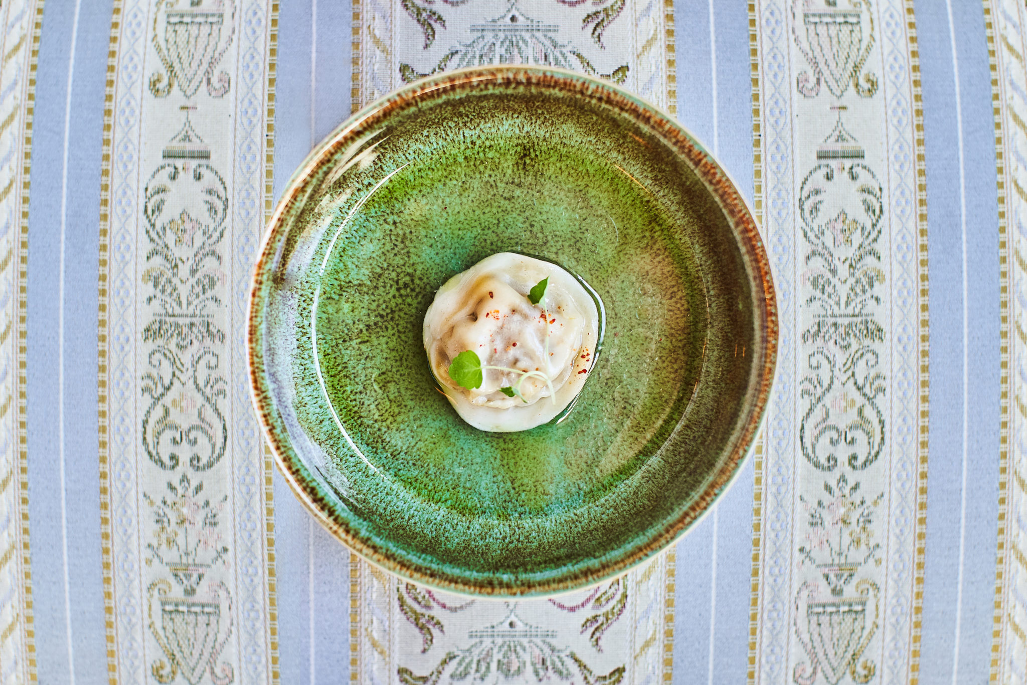 Pelmini de foie gras, bouillon parfumé à la noisette
