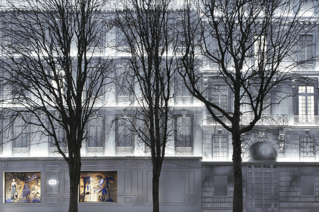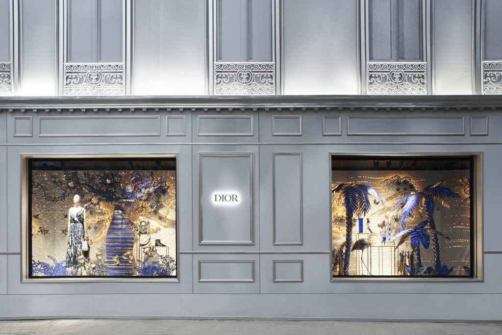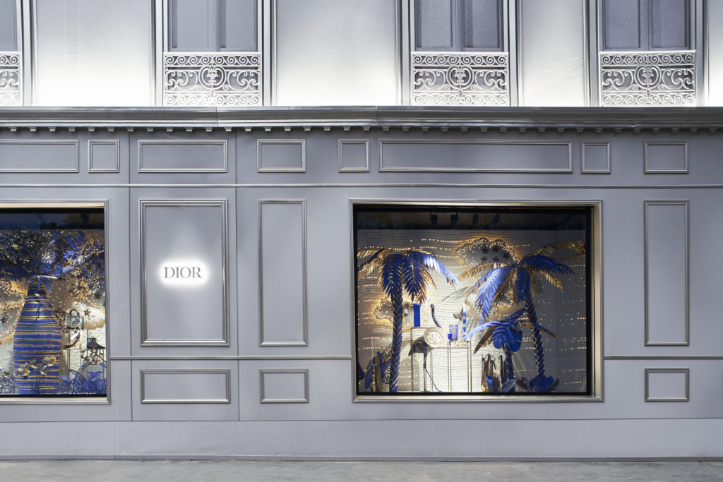 Rendez-vous emblématique de cette période festive, l’hôtel particulier du 30, avenue Montaigne s’habille chaque année aux couleurs de Noël en arborant des installations grandioses. Durant sa métamorphose en vue de sa renaissance, sa façade en trompe-l’œil perpétue la tradition et dévoile, au cœur de ses vitrines, les inspirations de la collection croisière 2020, en bleu et or, deux nuances chères au couturier-fondateur. Un moment suspendu pour (re)découvrir l’architecture de cette boutique d’exception et vivre la magie Dior