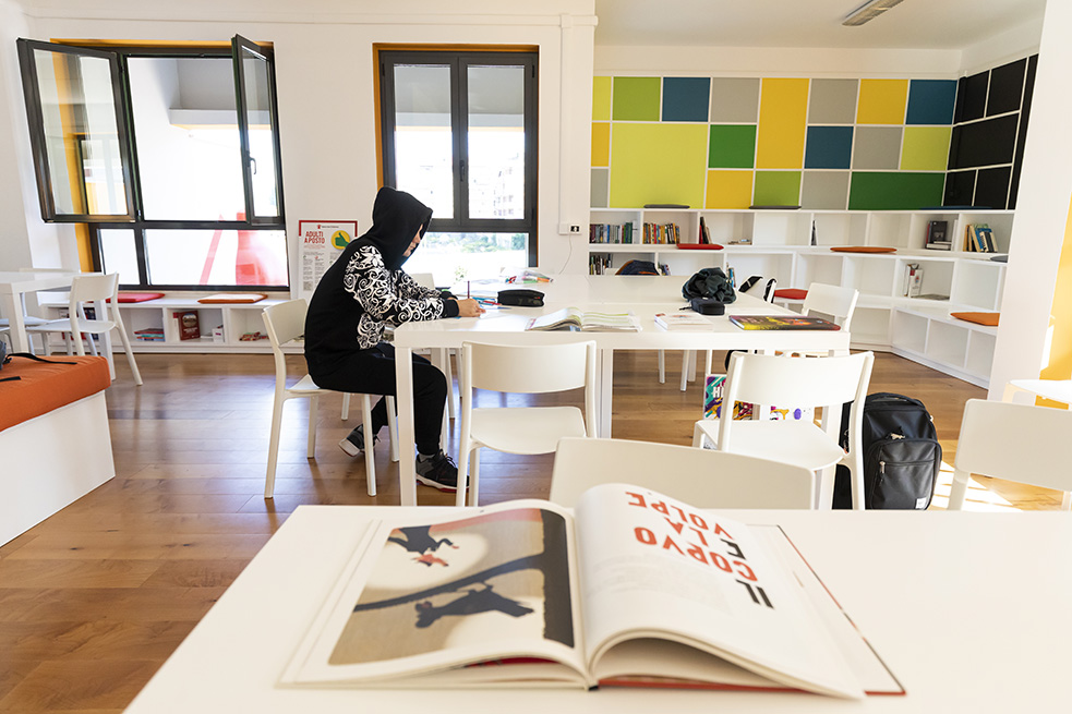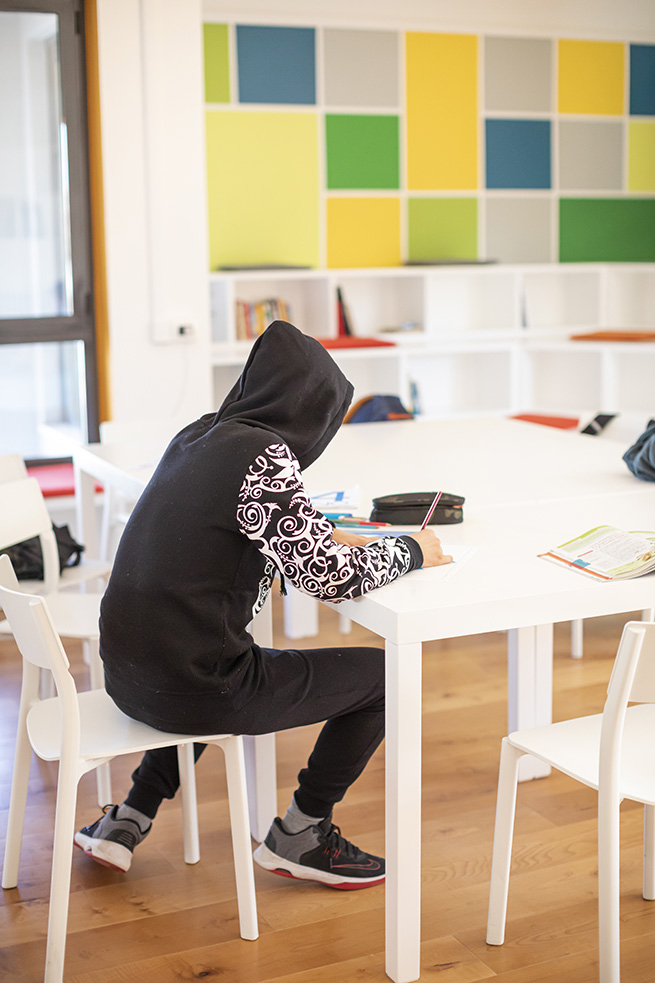L’offre de formation se décline autour de 3 axes principaux, chacun offrant l’opportunité aux élèves de renforcer leurs connaissances et leurs compétences, d’améliorer leur pensée analytique et leur capacité à travailler en équipe, et de collaborer sur des projets innovants. Un cours sur le Cinéma – en collaboration avec l’Institut du Film Gian Maria Volontè de la région du Lazio et l’association Greve 61 – enseigne la théorie et la pratique nécessaires à la production d’un film. Un cours de Photographie – en collaboration avec la société « WFP Photography » de Rome – est centré sur les différentes techniques et méthodes autour de l’art de la photographie, depuis la conception jusqu’au résultat final. Un cours sur le Design et les Mani Intelligenti (mains savantes) – est le résultat d’un collaboration scientifique entre Save the Children et le centre interdépartemental Sapienza Design Research de l’Université La Sapienza de Rome – visant à développer les compétences en design des élèves à travers des cours de travaux pratiques sur le modelage 3D, le prototypage rapide pour la joaillerie, le modelage dynamique, les illustrations en stop-motion et en sérigraphie, le design numérique assisté par la robotique ou encore l’utilisation de la technologie 3D dans les domaines artistiques.