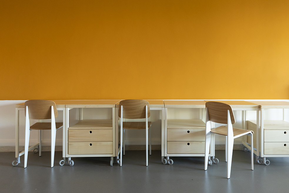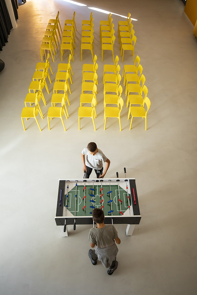 Il n’y a pas de couloirs mais des salles équipées de media digitaux pour le partage ; il n’y a pas de salles de classe normales mais des laboratoires dont l’agencement et l’éclairage sont modulables, des espaces pouvant être modifiés pour s’adapter aux différentes activités et ambiances de la journée. C’est un environnement où la couleur rouge de Save the Children et celle, jaune soleil des murs, s’associent pour créer une teinte orange, évoquant la couleur safran emblématique et reconnaissable de la Maison Bvlgari.