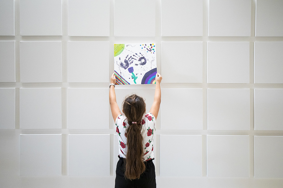 Le parcours se termine à l’extérieur de l’immeuble, au milieu de la nature : des arbres fraîchement plantés et un potager urbain crée pour les étudiants rappellent au visiteur que chaque graine a besoin d’être nourrie et protégée et de prendre la lumière pour grandir et s’épanouir dans une nouvelle vie.