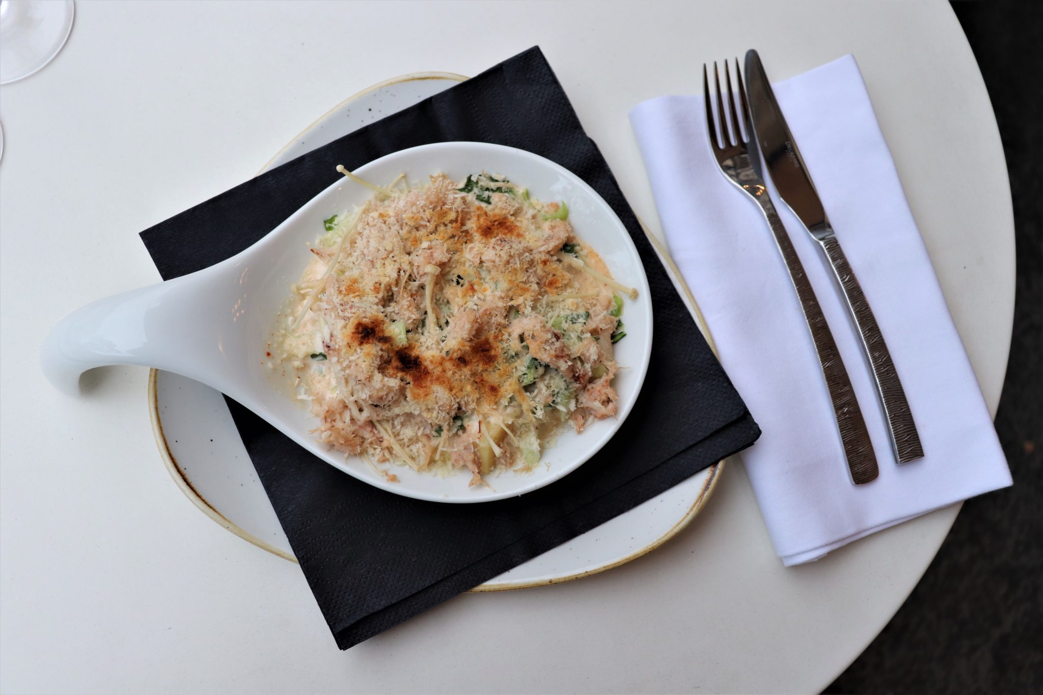 Concernant les spécialités asiatiques, la Cassolette de Crabe et le Phô au Crabe Bouillon seront à l’honneur. Vous retrouverez ces deux spécialités aux prix respectifs de 15€ et 17€. Pour la Cassolette de Crabe, Panais de saison, Pak Choï et Enoki, le Crabe Bleu sera accompagné d’une Sauce Crémeuse à la Fleur de Sel et aux Epices. Le tout sera Gratiné au Parmesan et à la Chapelure Japonaise.