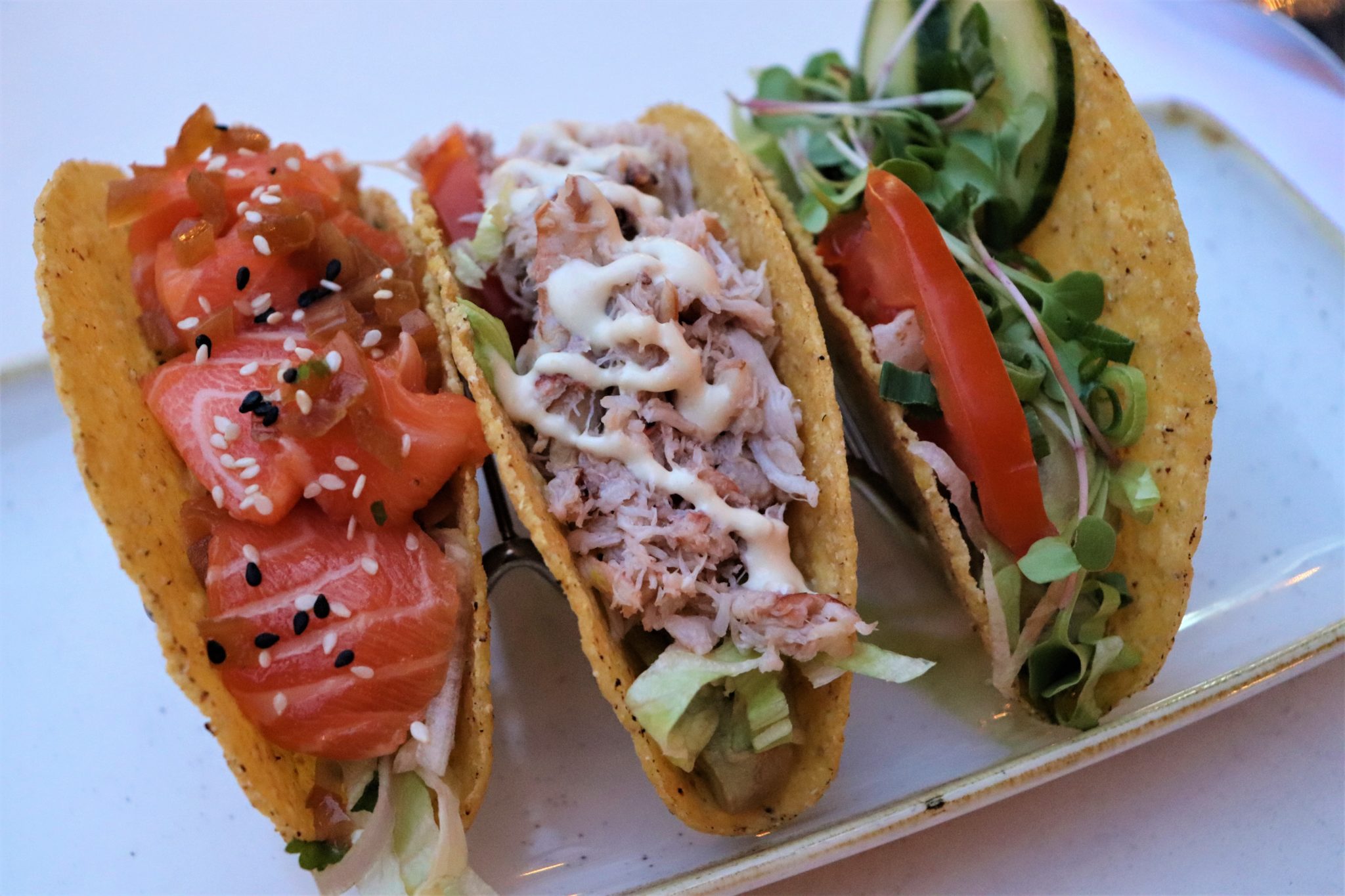 Côté snacking chic, vous retrouverez la Trilogie de Tacos. Le Tacos Végétarien sera composé d’un guacamole, de pesto maison et d’un assortiment de légumes fraîcheur ; vous pourrez également déguster le Tacos au Saumon et ses Crudités accompagnés d’une délicieuse Sauce Oignon-sésame. Enfin, le fameux Tacos au Crabe Bleu sera accompagné d’un guacamole, de crudités et d’une sauce mayonnaise moutardée. Déclinés sous forme de trio (à 14€) ou bien à l’unité (5€), cet assortiment de Tacos saura satisfaire toutes vos papilles.
