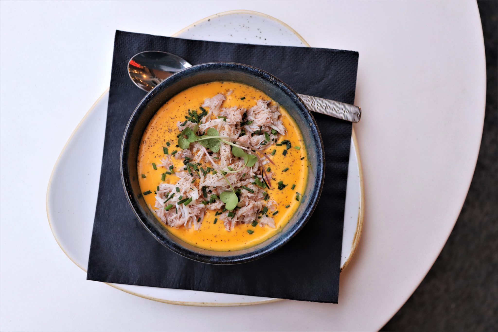 Créé en 2016 par le Groupe Caviar Kaspia, qui excelle dans la gastronomie de luxe, le restaurant Crabe Royal est entièrement dédié au Crabe Royal du Kamchatka. Espèce particulièrement réputée pour sa délicate chair, le Crabe Royal du Kamtchatka est considéré comme le plus grand crustacé du monde et pêché dans la plus pure tradition depuis 1870. Pour découvrir le Crabe Royal du Kamchatka sous toutes ses formes, le restaurant vous dévoile les nouveautés de sa carte hivernale. Afin de combattre le froid, le Chef vous propose un Velouté de Potimarron au Crabe. Légèrement Crémeux, ce velouté est servi chaud avec du Crabe Bleu à l’intérieur (au prix de 14€).
