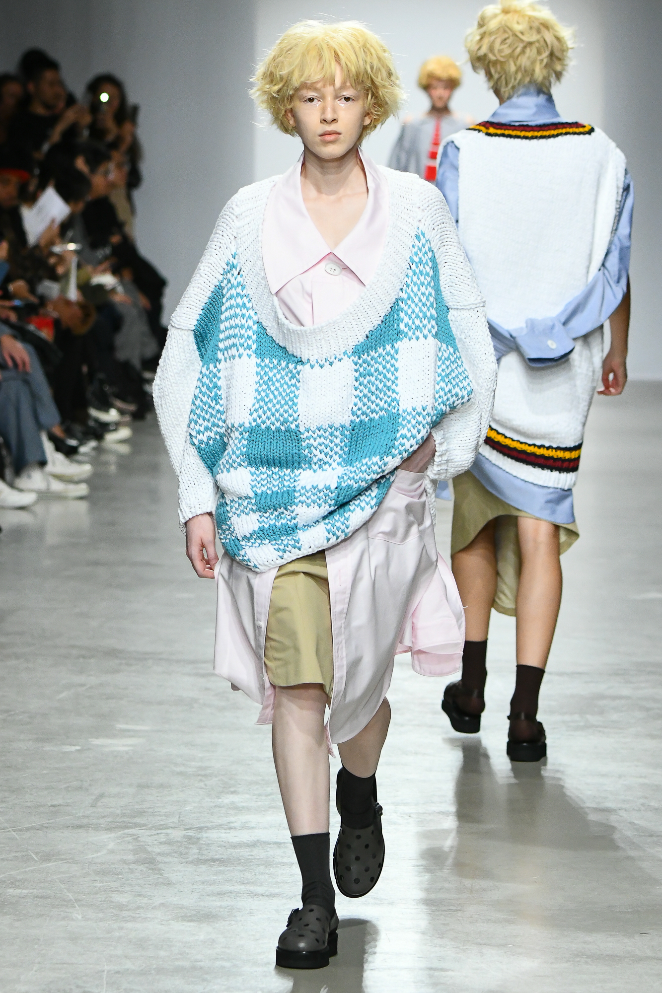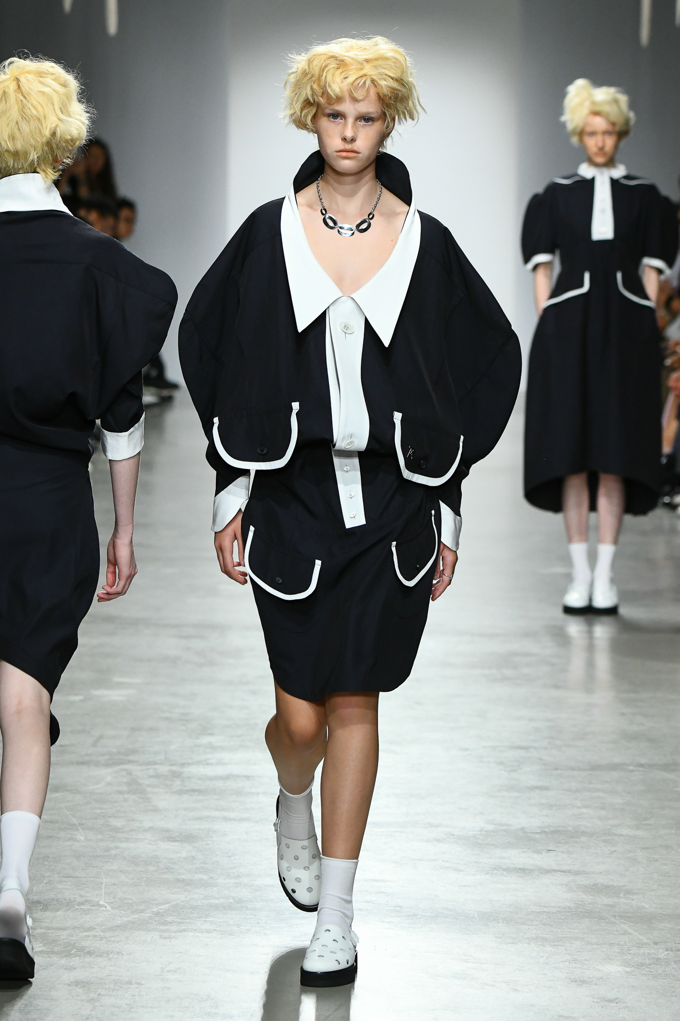 For Spring-Summer 2020, Kunihiko Morinaga blurs the boundaries of 2D and 3D, recasting Instagram fashion images IRL and translating digital distortions into surrealist, wearable garments.