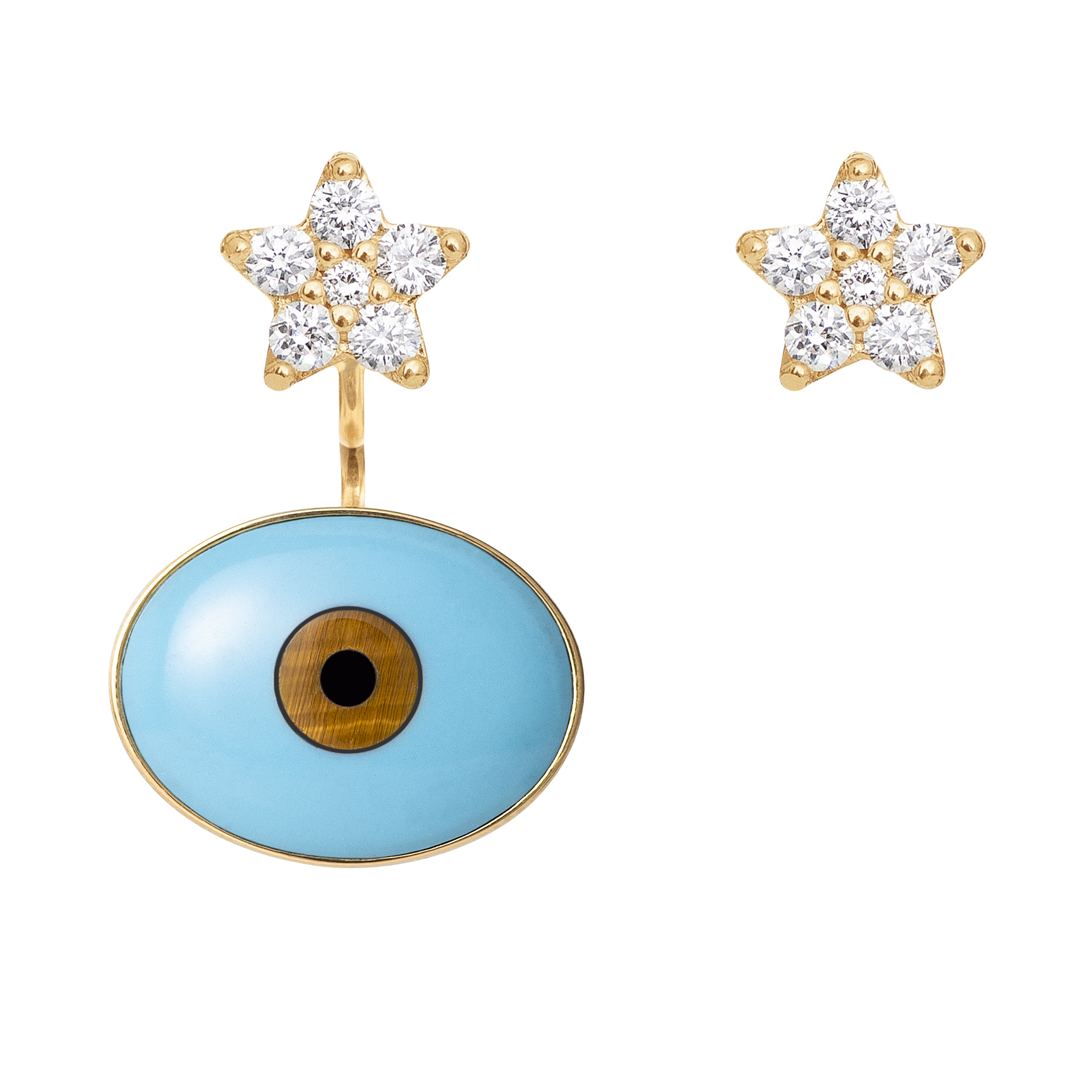 De plus, Charlotte Lynggaard continue d’ajouter une touche de fantaisie dans ses collections en transformant la turquoise en « Tiger eye », sur une boucle d’oreille, avec diamants ou non, c’est à vous de choisir.