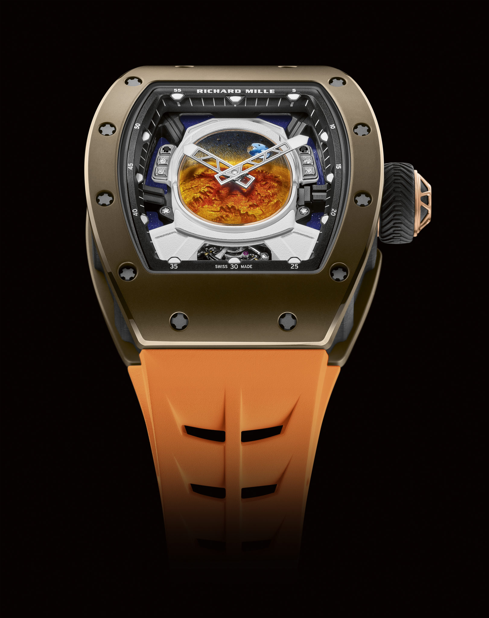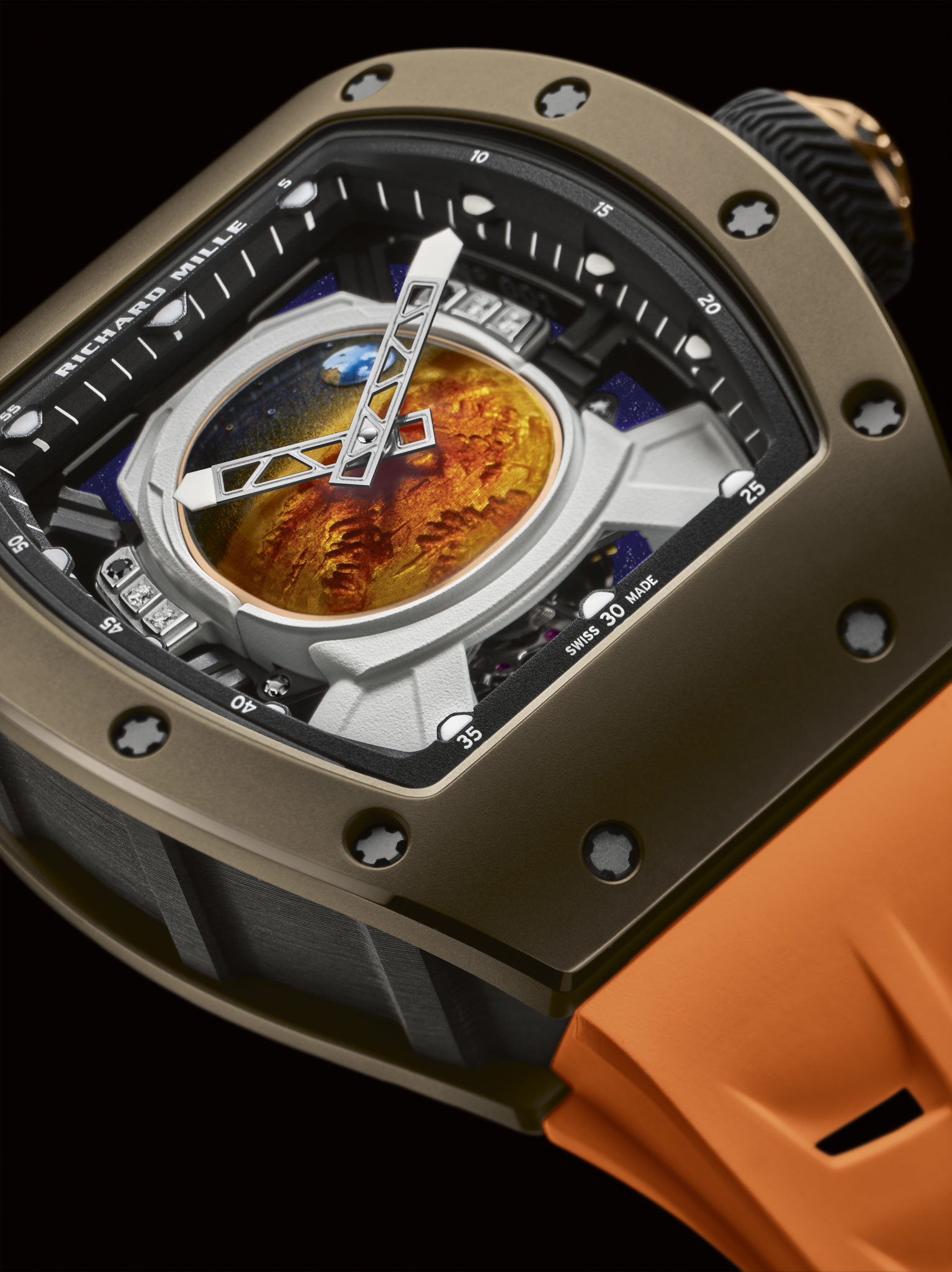« Dans chaque facette de mon travail, je cherche toujours quelque chose de nouveau, de différent. Travailler avec Richard Mille m’a donc donné l’occasion d’aller là où personne n’était allé auparavant…c’est-à-dire sur Mars. Créer signifie simplement envisager les choses sous un angle particulier, c’est ce qui apporte la différence. Avec la RM 52-05, Mars est regardé d’un point de vue à la fois personnel, inédit et inattendu. Ainsi nous brisons les codes. Rendez-vous compte: nous avons le meilleur chronométreur au monde. Nous avons Mars. Et un Afro- Américain de Virginie, tous connectés. » Pharrell Williams