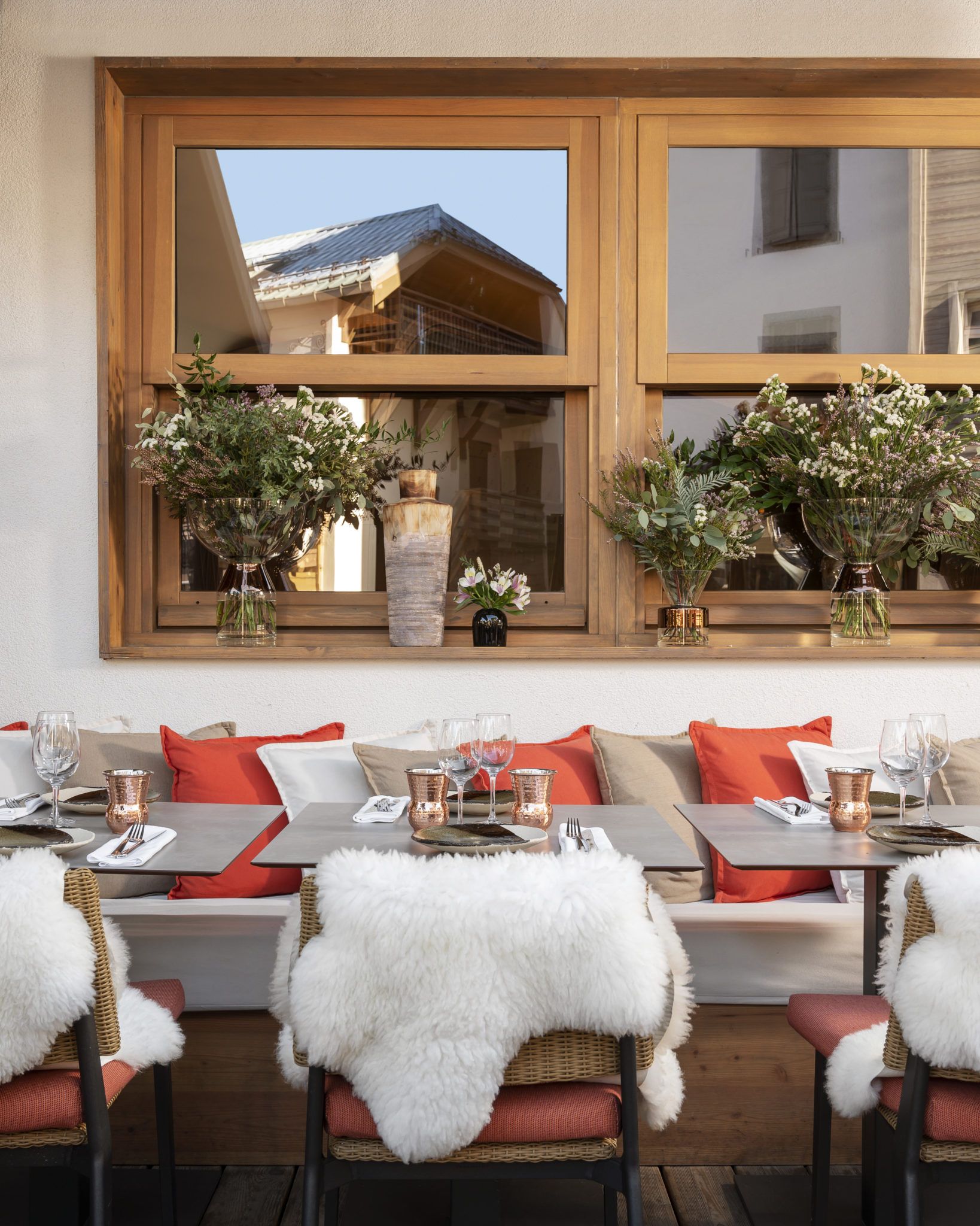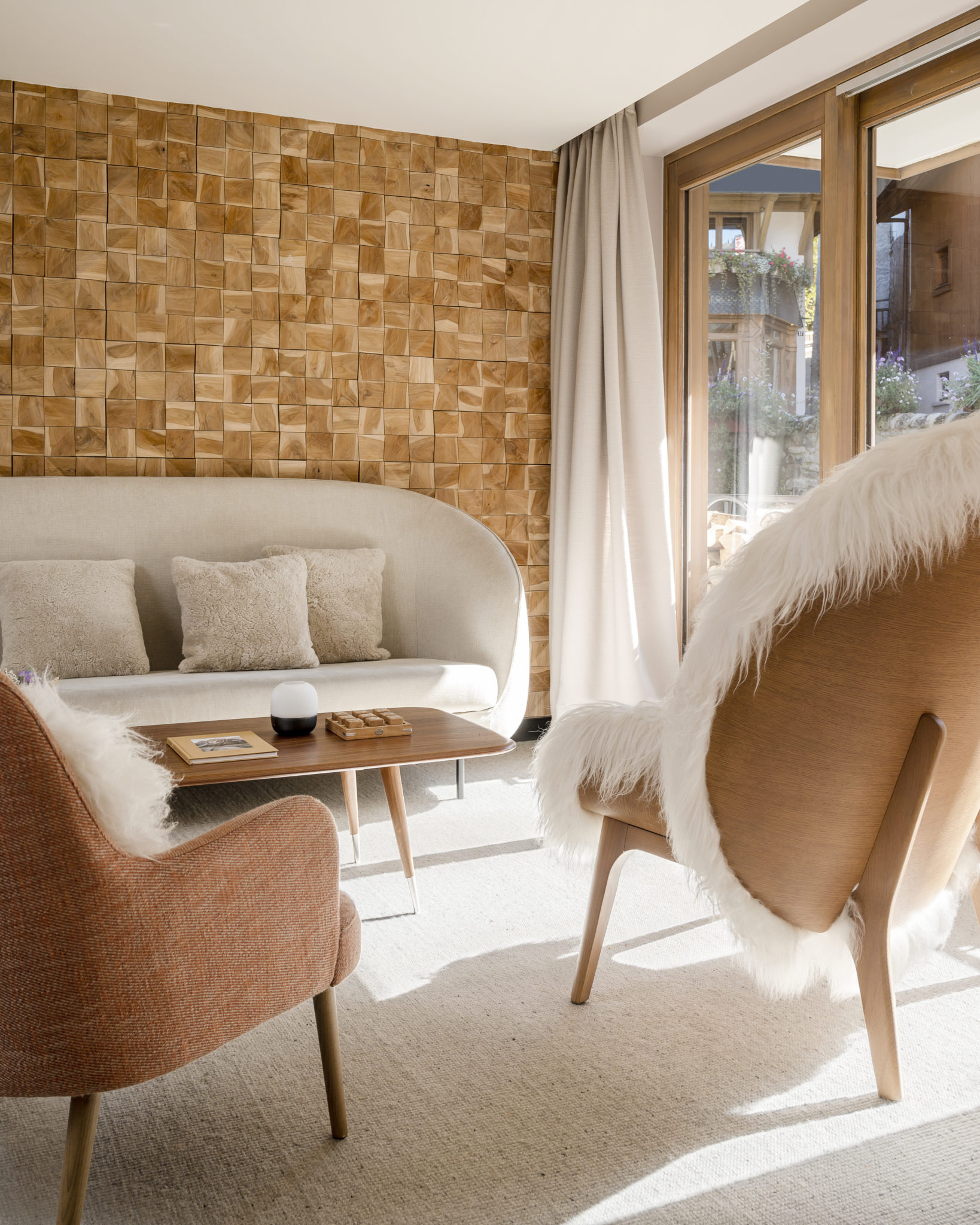 Et c’est au beau milieu du village, cerné de chalets en bois, que le Coeur de Megève a élu domicile.