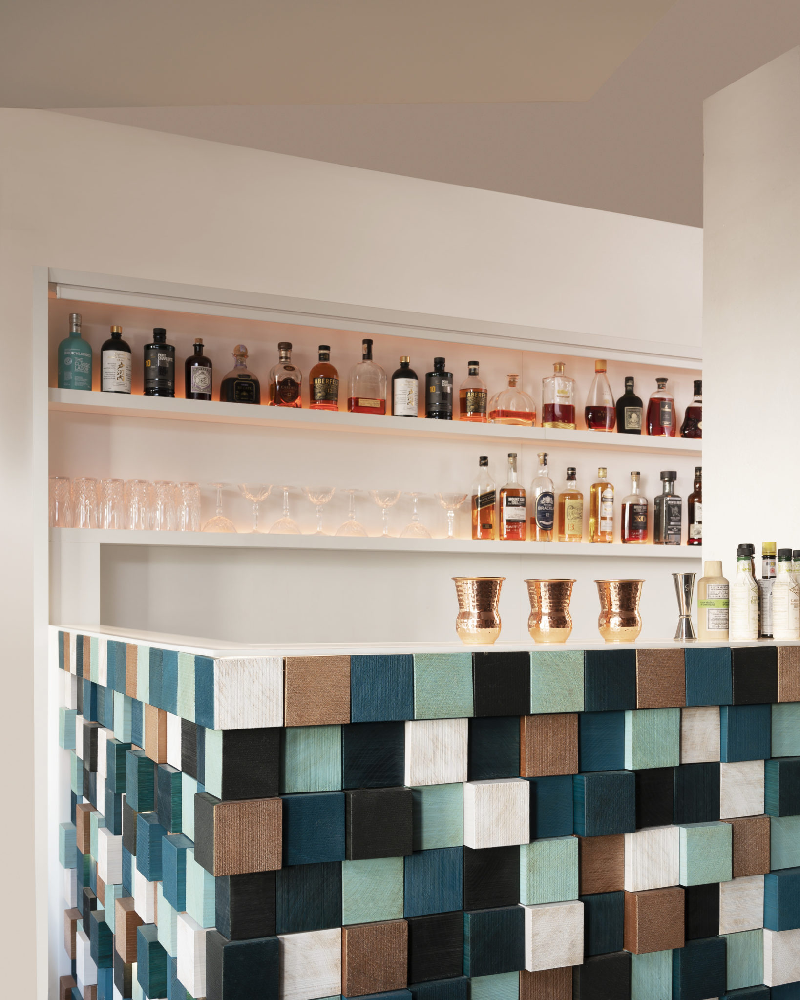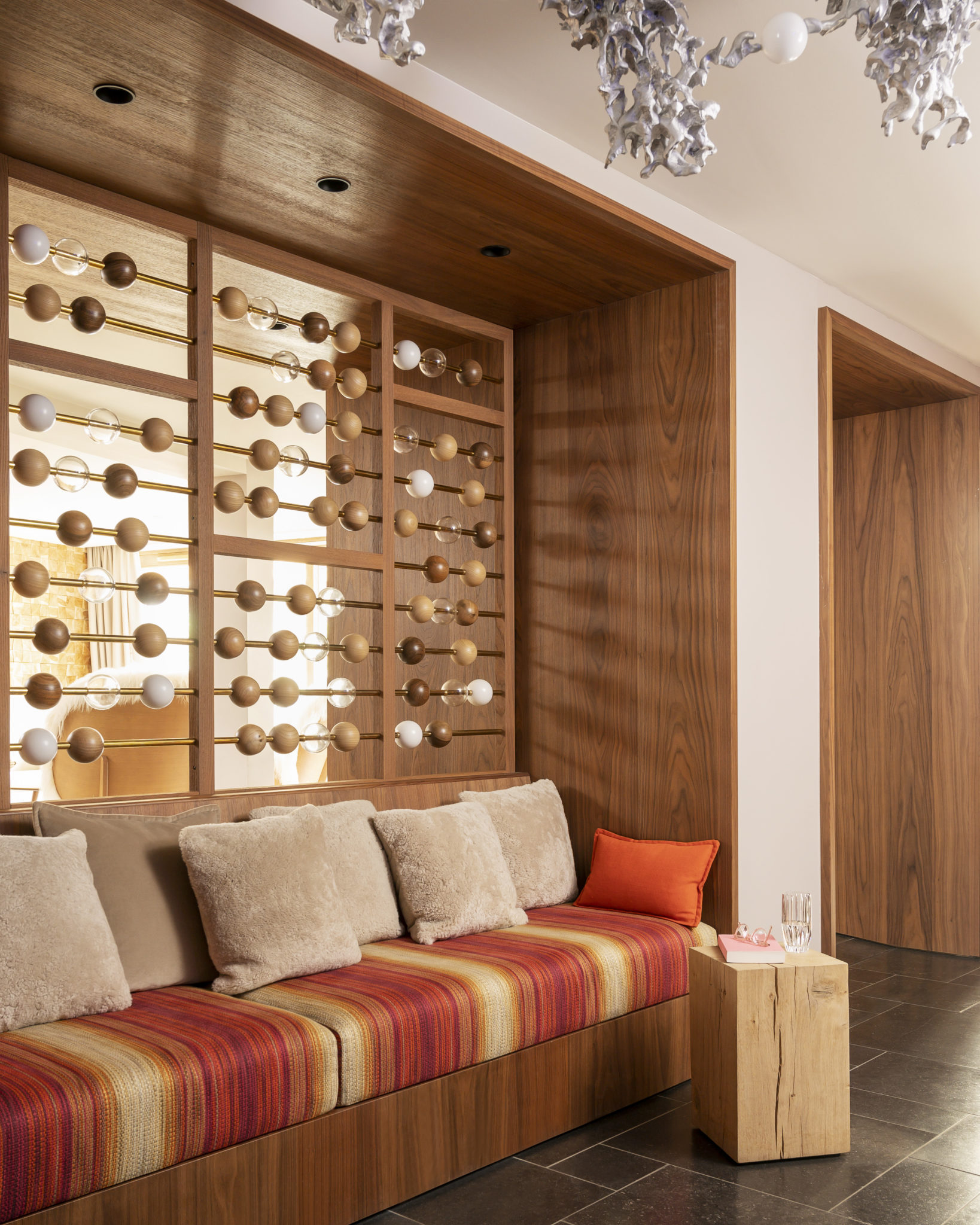Au rez-de-chaussée, le salon, où perce la lumière à travers de grandes fenêtres, rassemble, autour d’un feu qui crépite, des canapés moelleux en tissu clair et des fauteuils en fourrure immaculée. Bien confortablement installés, les visiteurs piochent dans la bibliothèque qui déborde de romans, de magazines ou encore de livres d’art. Et pour ceux qui ne souhaitent pas bouquiner, il reste la possibilité de jouer aux cartes et au backgammon, de déguster un chocolat chaud fumant face aux flocons ou encore de siroter des cocktails, accompagnés dossier d’assiettes à partager, à la nuit tombée