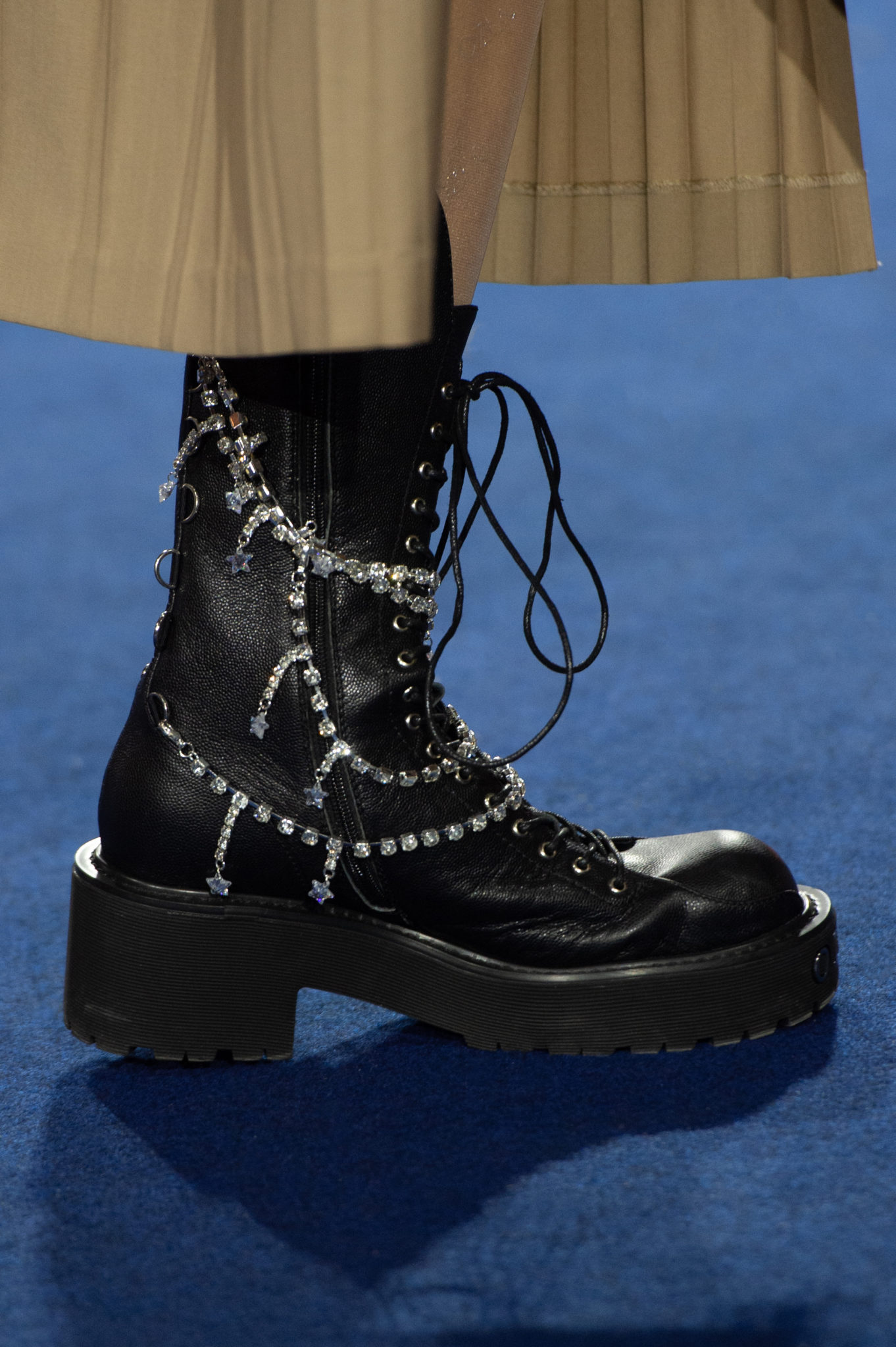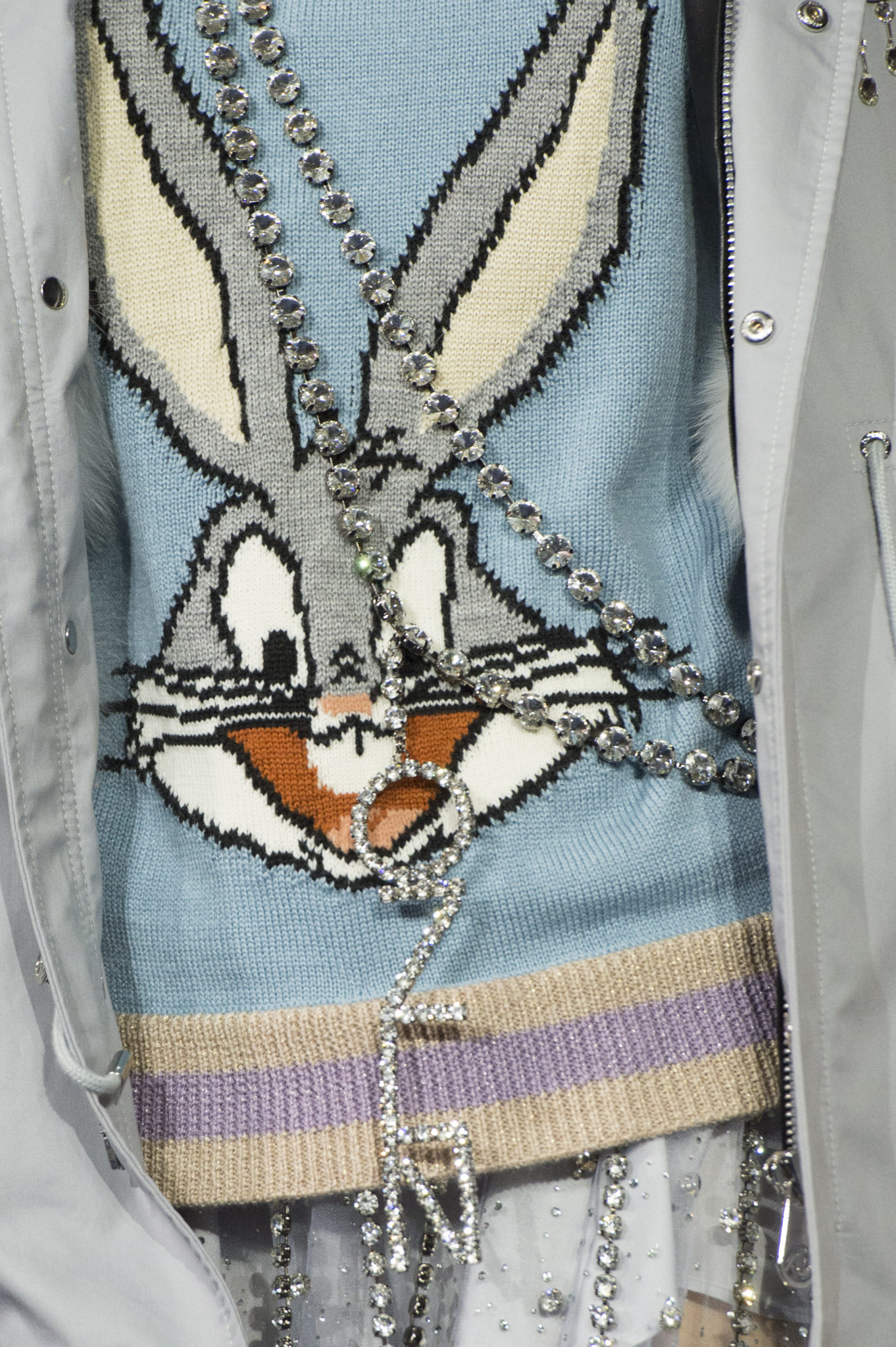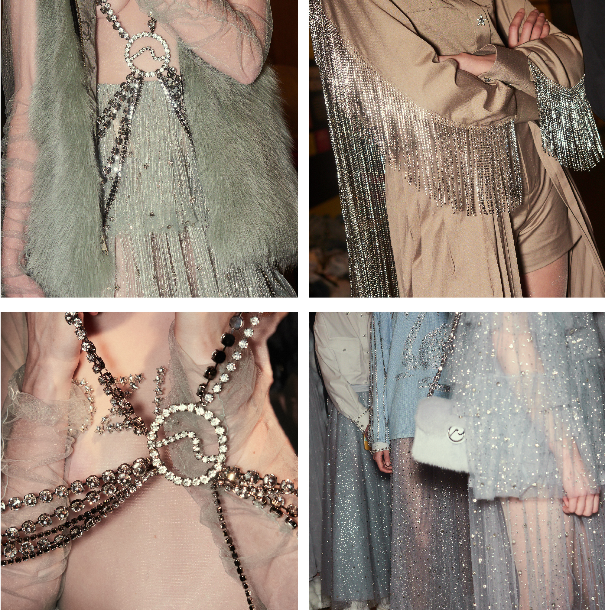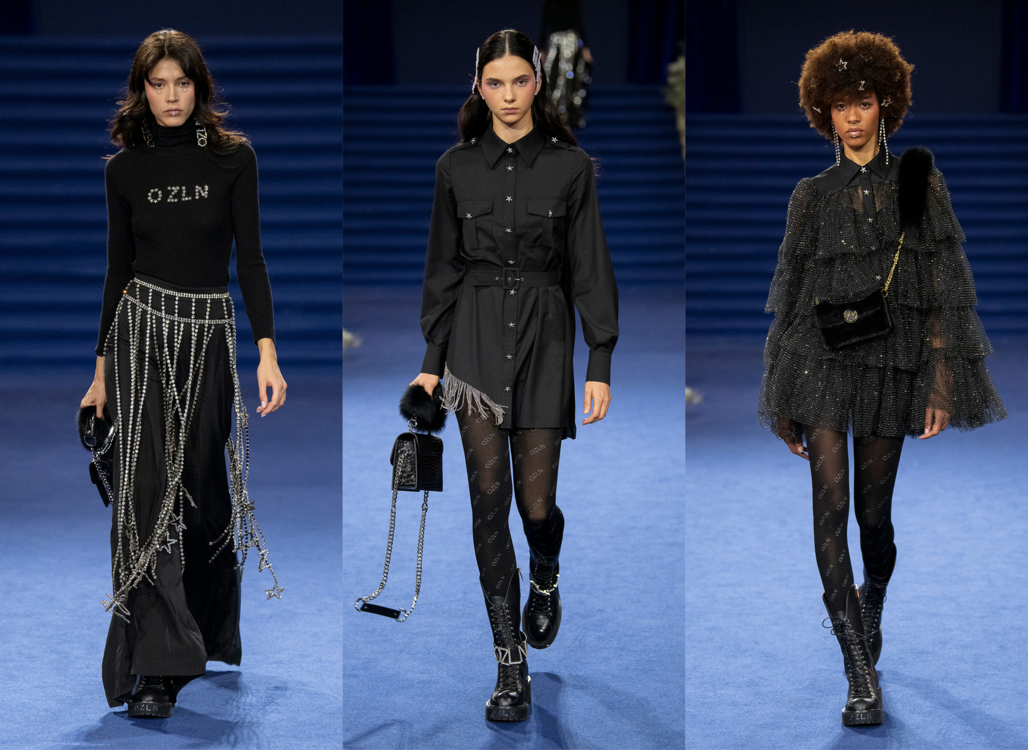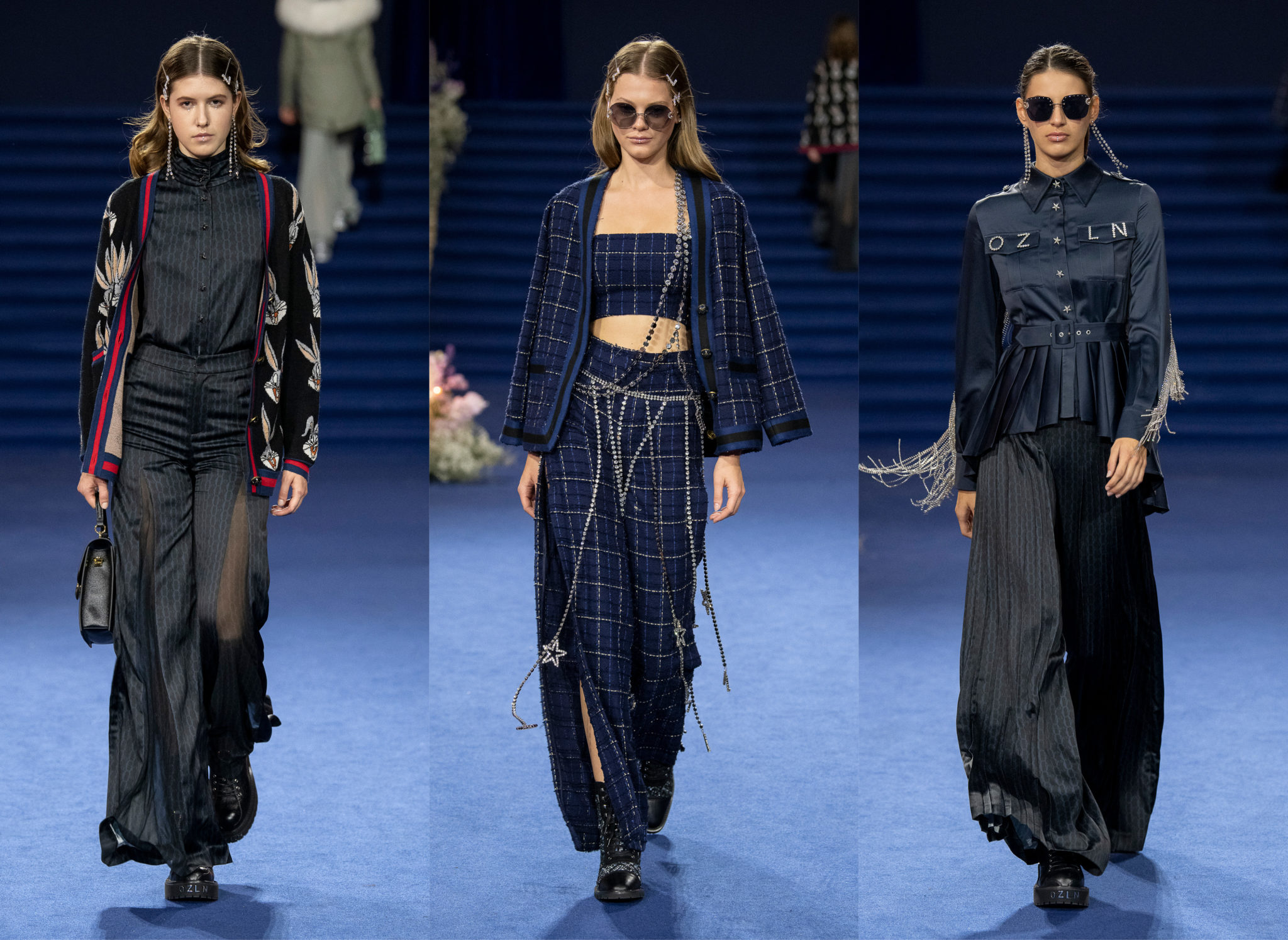 “We believe every woman, every girl, has a fairytale story within their heart – our aim is to fulfill her wonderous dreams and fantasy through the vision of OZLANA.” OZLANA is an Australian fashion brand with a romantic, playful personality, explored through story-telling inspired concepts. Devoted to quality fabrications, glimmering embellishments, & brand collaborations, the brand embodies a style of youthful & modern femininity, channelled through the signature Fur Parka, a traditional piece updated with the classic OZLANA touch. “The Neverland” Collection is the next chapter of the OZLANA story, a celebration of the surreal and enigmatic. OZLANA opens this world to the audience through their set, music composition, runway garments & brand collaborations, seeking to immerse them in their world, engaging all the senses, from the scent of the fresh florals, the bespoke music that swelled as guests took their place, to the Chupa Chups VIPs found amongst the gift bags. Collaborating with other artists, brands, and characters allow OZLANA to explore more story telling avenues, widening their world with every connection. The Neverland is a theatrical opera – the audience were invited to witness, watching live as magic happens before their eyes as the models cross the runway, in the boundary between reality & the surreal. The set indulges this fantasy, creating the world with navy velvet curtains hanging thick behind the runway & audience. The runway sparkles with chandeliers laid on navy carpet, as if fallen from the sky itself, with wild purple & white flowers organically placed across the runway & stairs of the grand Palais de la Decouverte space, elevated by the traditional French architecture. The Neverland collection revolved around five elements – the practical & lush fur parka, with decadent fur spilling over the collar & from inside. Crystal star showered tulles in soft ivory, sage, and light twilight blue. Structured asymmetrical wool suiting’s, pleats framing the body. Prints by Australian artist Victoria Garcia told the fable of The Neverland, rippling across voluminous dresses and western shirts in soft georgette, windblown as she crossed the heavens. The journey through the stars is reflected in the crystals & constellation prints that grace the collection, cascading off the bodies of the models, harnessed to them, wrapped entirely in this glimmering celestial dream. Even the buttons – tiny stars in silver & bronze, punctuating the waists & shoulders. The collection moves through stages, changing as the OZLANA girl grows through her flight. She finds her way to the neverland through the skies – she crosses constellations, galloping through the heavens. She begins her journey, determined and strong, marching to a dark electronic beat. The music settles, falling to a sweet serenity littered with the sounds of angelic starfall, bells chiming in a celestial melody. As she reaches the door to neverland, the music swells, building to an operatic crescendo, and the garments darken again, taking on a deep midnight hue with golden accents – signifying her conquest of the skies, her dream fulfilled. The audience never witnesses the neverland – they only witness her journey, and her growth, from naivety to strong confidence, but as the music builds to it’s climax, the finale march of models drop their hood, signifying their destination reached. As each model marches past – sweet sensibilities of her soft blue, ivory tulles giving way to the darkest hues of night – her pilgrimage is clear. The collection includes collaborations with Looney Tunes’ Bugs Bunny & Chupa Chups, defining a childlike naivety, and also introduces a collaboration with Kopenhagen Fur, creating artisanal parka and fur vest showpieces for the collection. By inviting Bugs Bunny & Chupa Chups into our Neverland world, the garments are playful & self aware of the childhood motifs throughout the collection, whilst also ensuring the garments are accessible by blurring the lines between commercial & artistic design. OZLANA created a SS20 Sunglasses collection with CARIN, a sunglasses brand from Korea. Following on from their collaboration in NYFW SS19, this collection included the first custom designs by OZLANA, featuring styles that reflected The Neverland collection, in light gold & dark navy tones. Swarovski crystals and smooth matte gold hardware formed two new styles to be released in October 2019. The Neverland also debuts a collaboration with world renowned Kopenhagen Fur. This collaboration includes the highest European standard of artisan creations for The Neverland runway, as well as an exclusive first commercial mink fur collection for OZLANA. Kopenhagen Fur is the leafing provider of fur, recognised for it’s exceptional quality & welfare. Kopenhagen Studio, the creative centre & development lab for Kopenhagen Fur is a centre of inspiration, innovation & creativity. Designers, fashion houses and key industry figures around the world come to Kopenhagen Studio to work with the highly skilled in-house artisan. As such, Kopenhagen Studio created two artisan fur vests for the runway, created with the utmost skill in Denmark & Greece, take advantage of the highest quality techniques around the world. As an outerwear brand, OZLANA’s parkas are on the outside practical and sensible, with a hint of the luxurious dreams rippling on the lush fur collar. Once zipped open, however, and fully enveloped in the pastel, dreamy fur inside – the experience is forever changed.