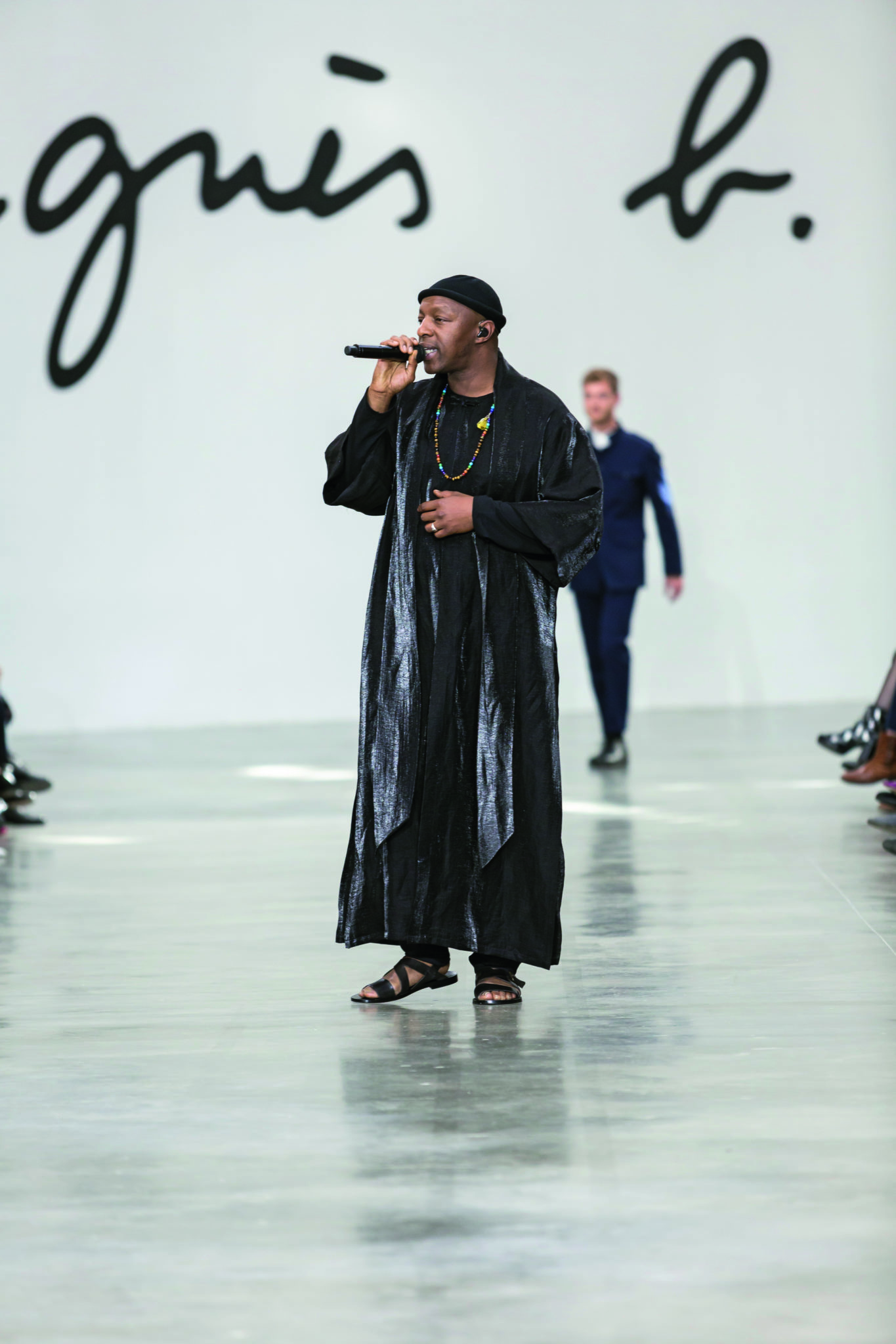 Pour cette collection printemps-été 2020, agnès b. raconte les petits instants d’insouciance qui habillent les beaux jours. Une rapide course à vélo sous la pluie estivale de Tokyo, une balade dans les rues chaudes de Marseille, un dîner dans le jardin bercé par la voix envoutante d’Oxmo Puccino… Ces moments sont habités par des personnages forts qu’agnès b. crée en imaginant sa collection, comme le D’Artagnan des temps modernes, minimal dans sa combinaison de travail anthracite, ou la femme gangster à la Tarantino qui porte son costume de soie noir à même la peau. Cette nouvelle collection inspire aussi la douceur, avec une gamme de couleur passant du parme discret à l’orange vif qui se décline en matières légères dans lesquelles on se sent bien quand il fait chaud et que l’on superpose élégamment quand le vent se lève. En 2020, agnès b. célèbre l’Afrique et rend hommage à la sape avec des silhouettes bariolées conçues pour les hommes de goût qui n’ont pas peur du visible.
