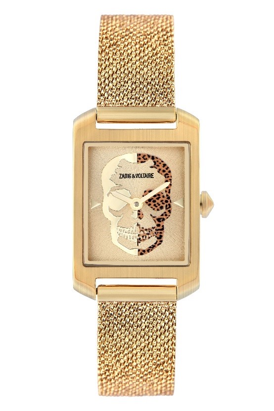 La couronne se pare d’un clou tandis que le fond du cadran s’imprègne des symboles chers à la griffe comme la tête de mort, les ailes d’ange ou l’imprimé léopard. D’une subtile impertinence, signature de Zadig&Voltaire et de sa Directrice Artistique Cecilia Bönström, cette montre n’est vraiment pas comme les autres. Son design a été exclusivement pensé par la griffe pour que celle qui la porte fasse vraiment la différence.