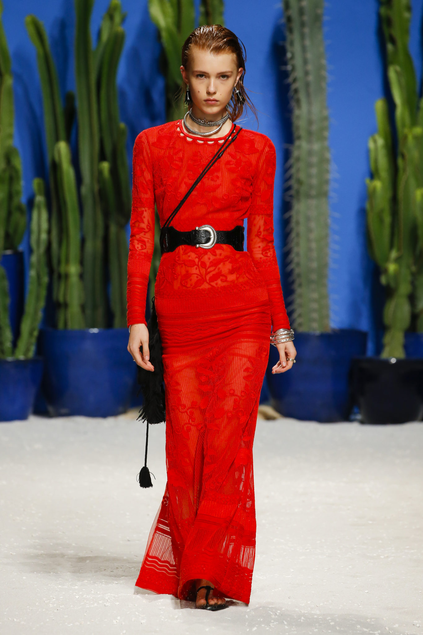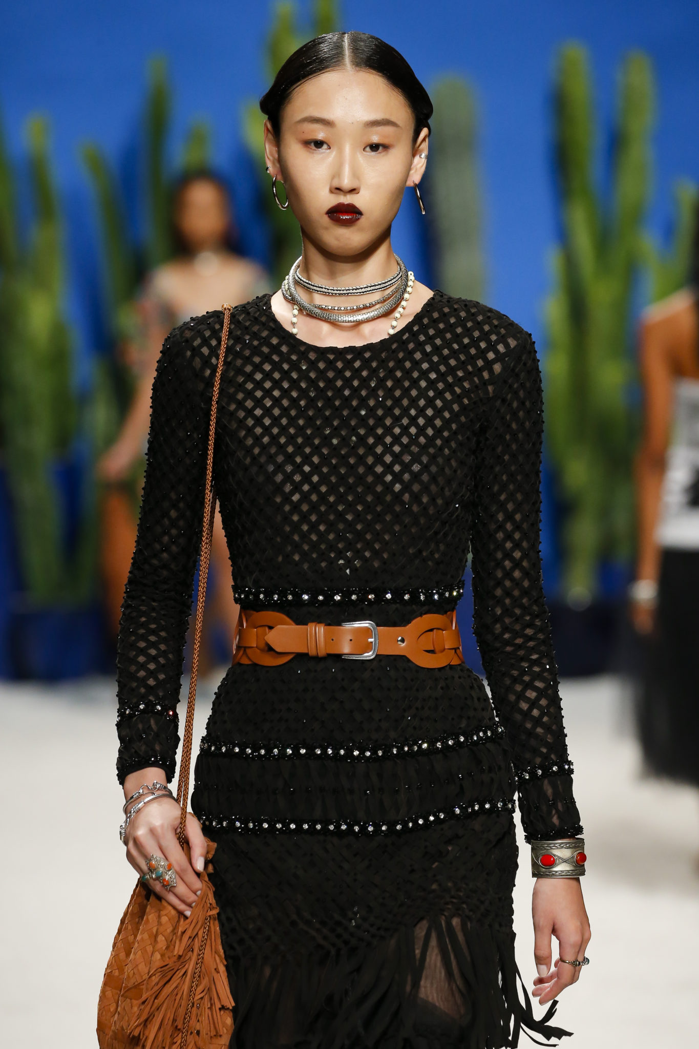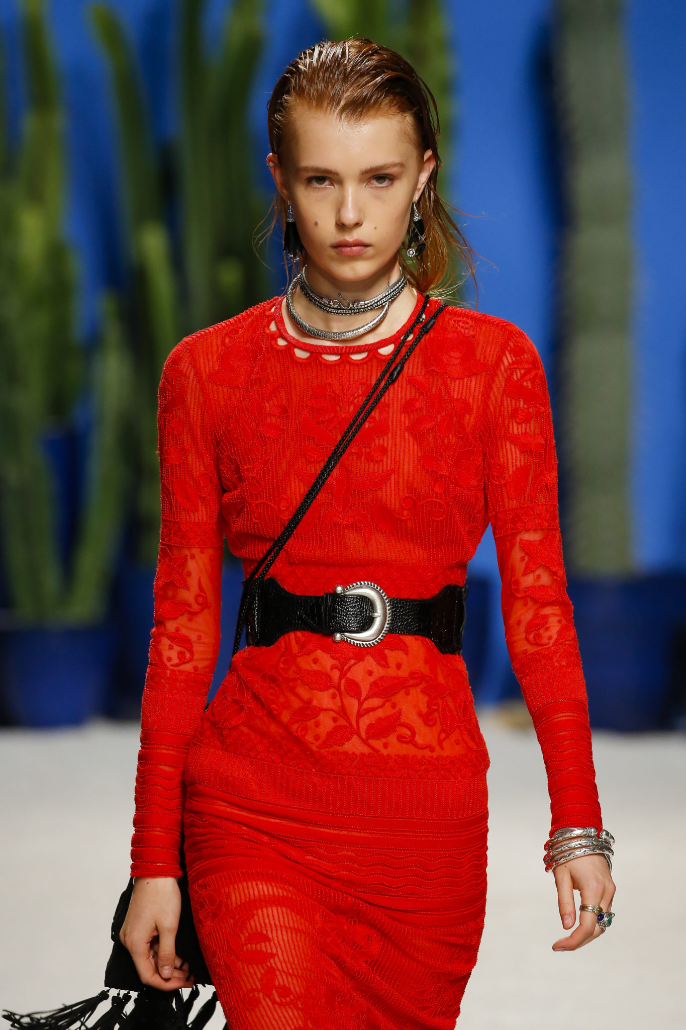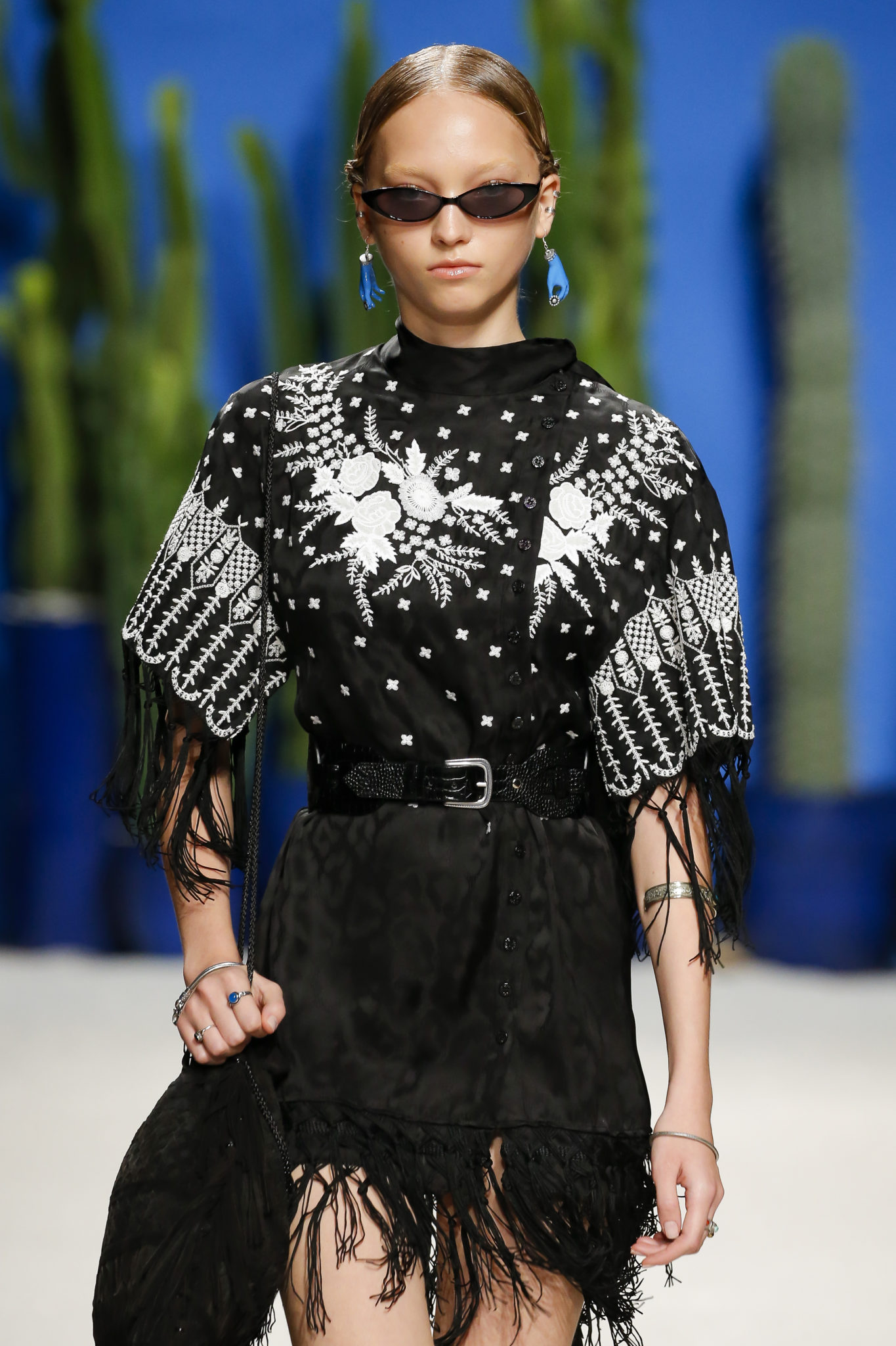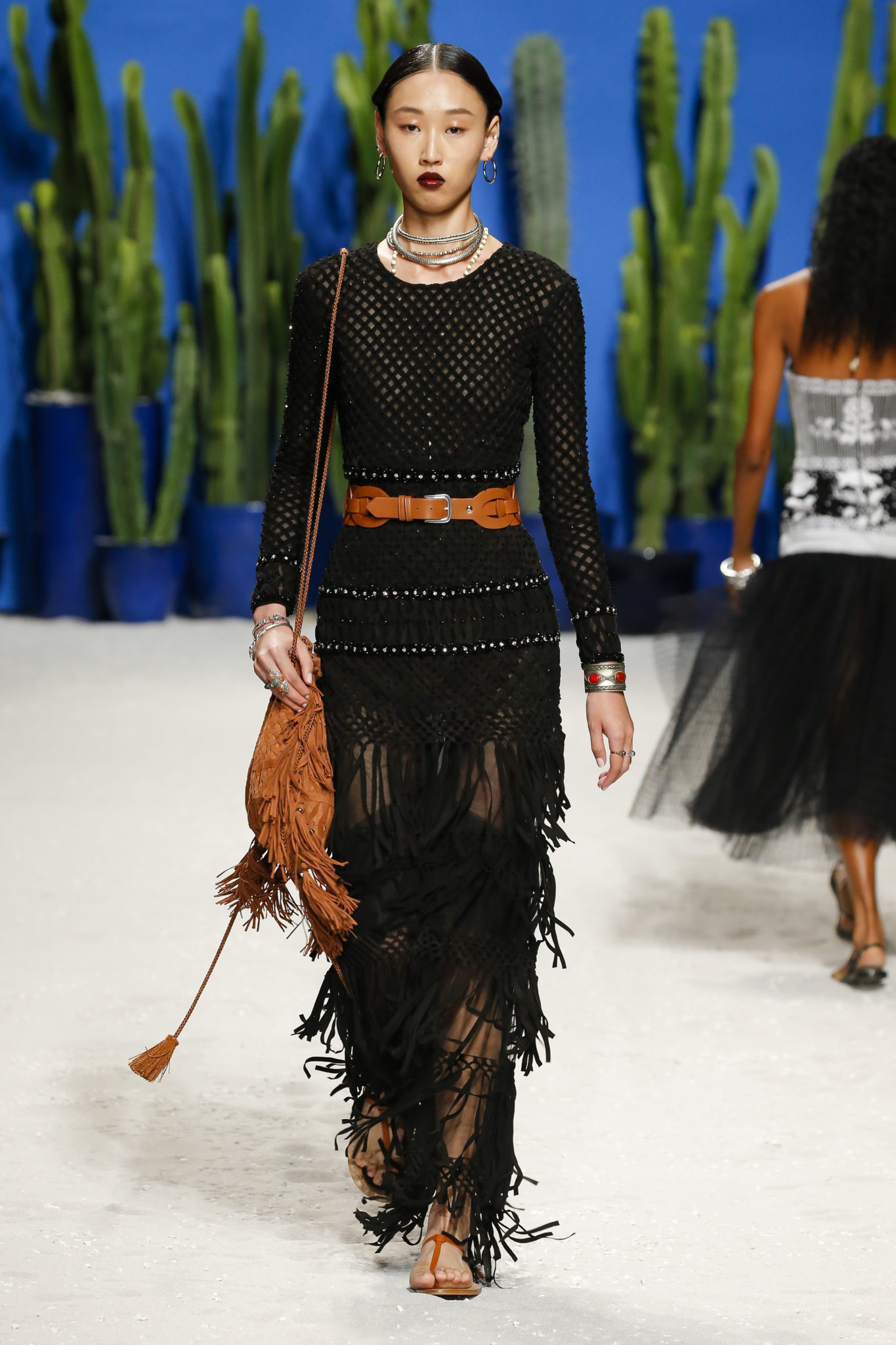 The bravura of this collection is also the accumulation of the bold accessories. An eclectic range of earrings and necklaces, not forgetting the moccasins and flat sandals as well as an oversized fringed cross-over bag complete the silhouette.