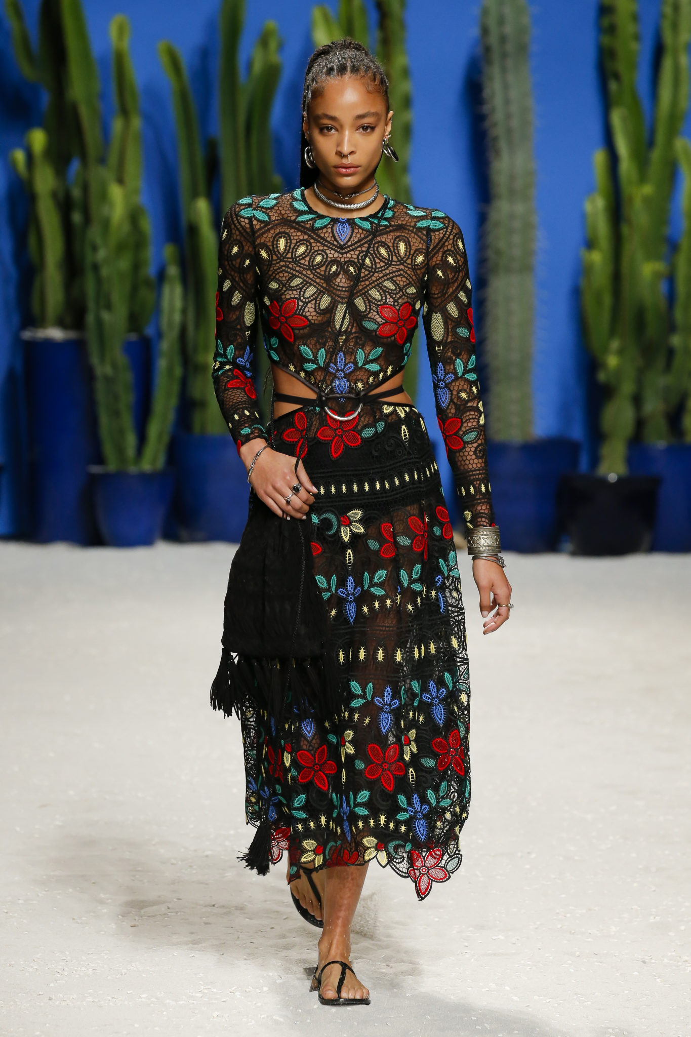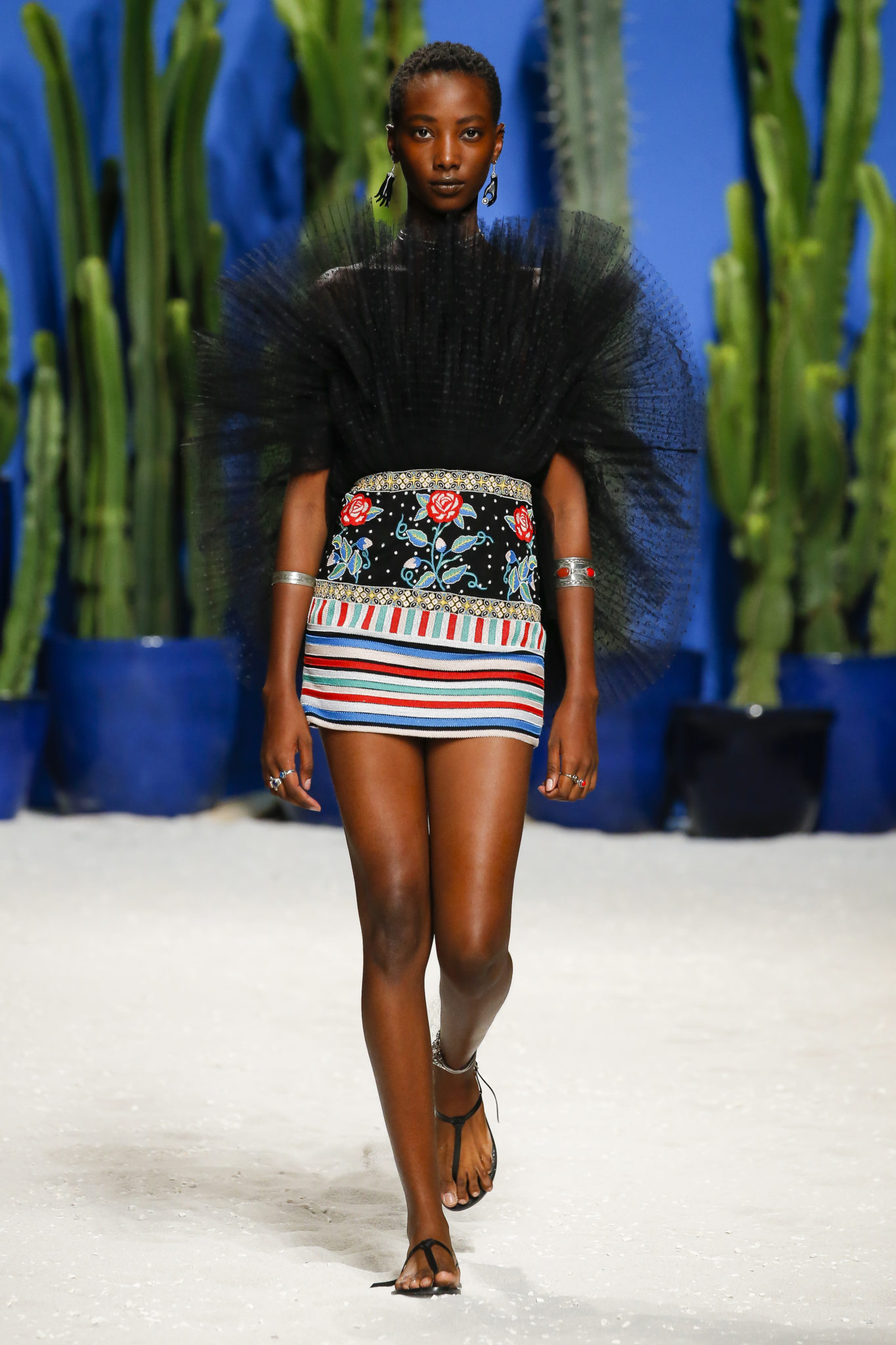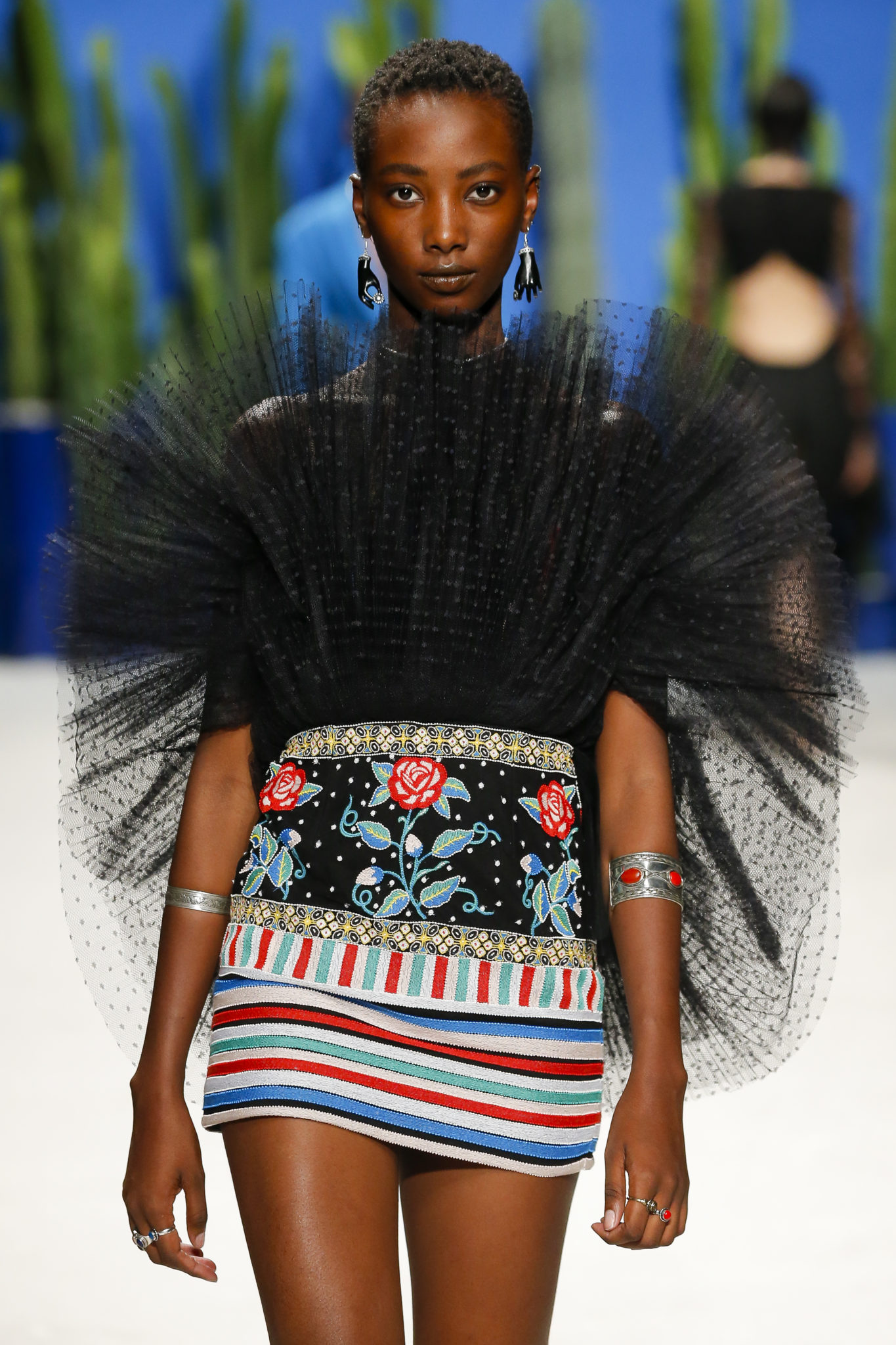 The essence of the Spring-Summer collection is drawn from its strength to overcome aesthetic codes and avant-garde ambiguity. The combination of genres, techniques and fabrics in a plethora of colours with shimmering embroidery, floral prints and multicoloured stripes are expressed through this audacious collection.
