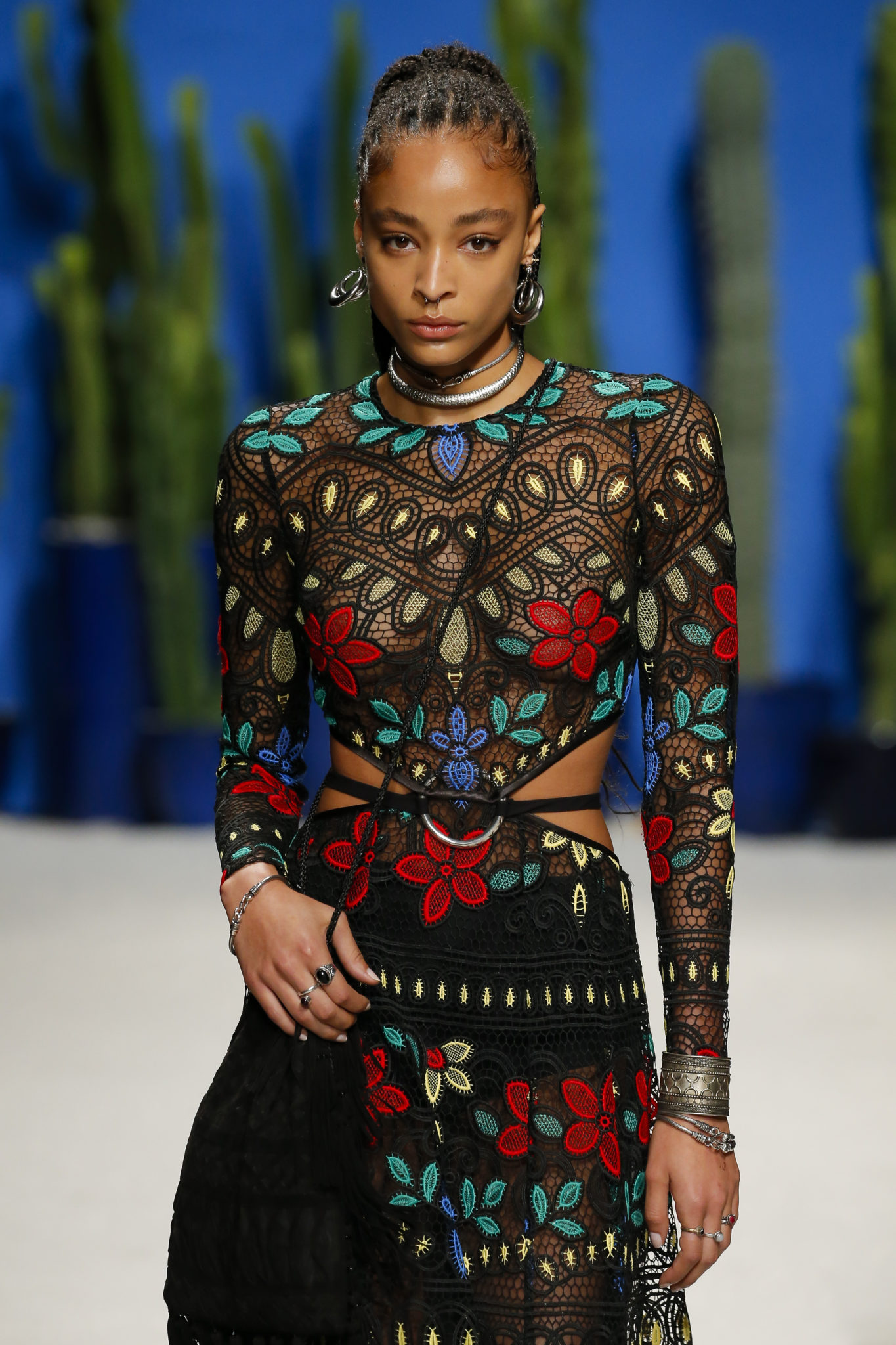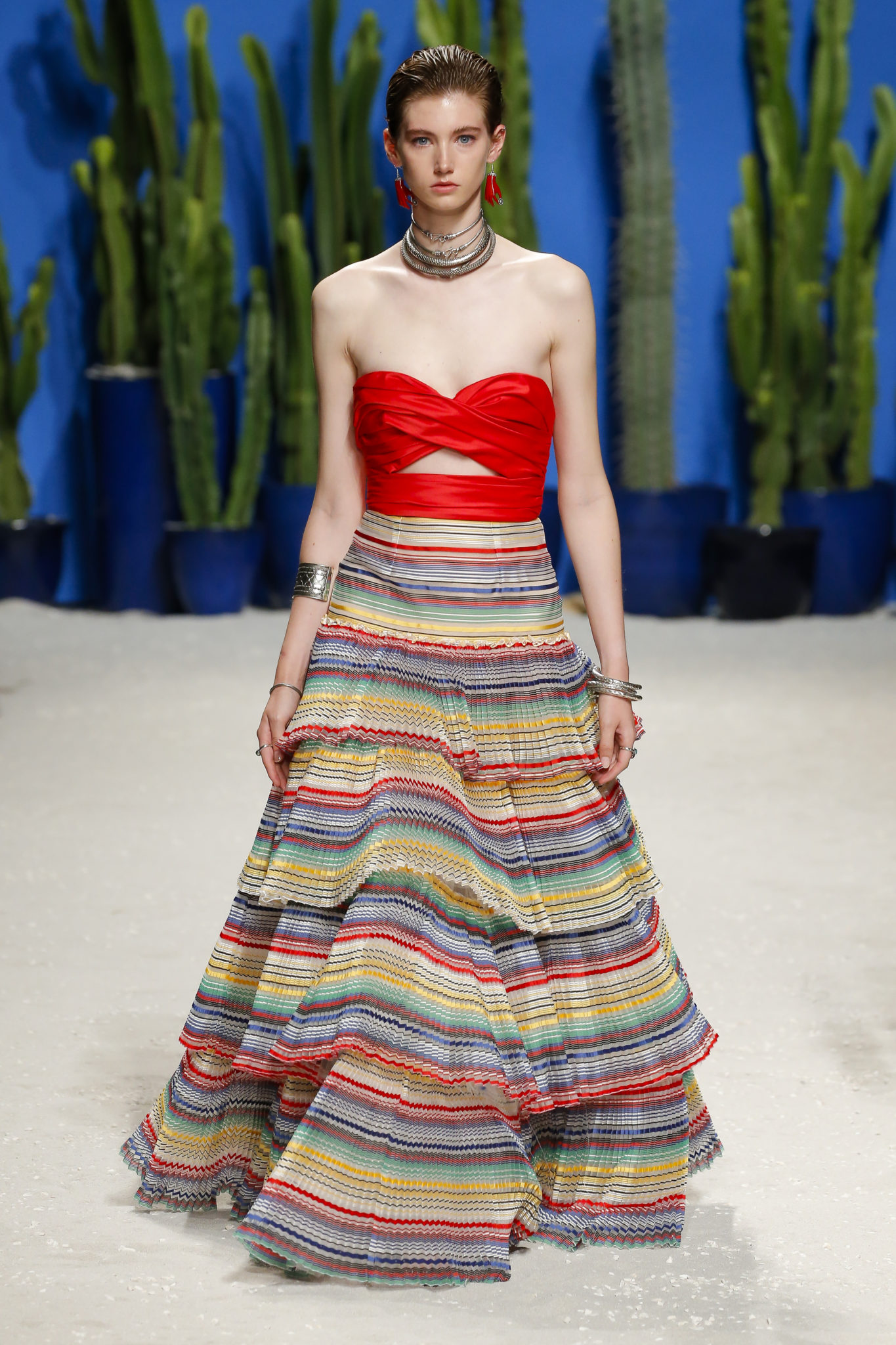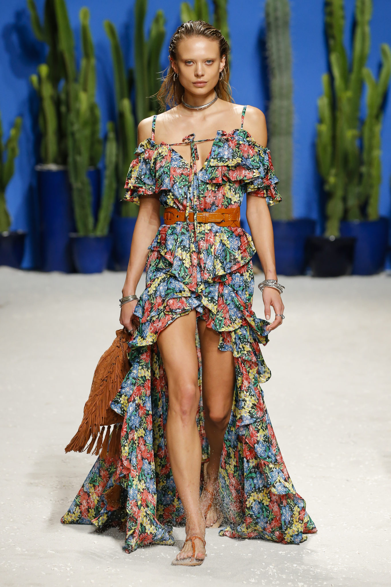 The essence of the Spring-Summer collection is drawn from its strength to overcome aesthetic codes and avant-garde ambiguity. The combination of genres, techniques and fabrics in a plethora of colours with shimmering embroidery, floral prints and multicoloured stripes are expressed through this audacious collection.