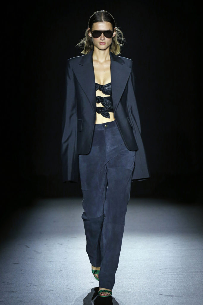 Au sein du somptueux décor du Ritz, lieu favori du Top, la marque dévoile une collection au style « Nocturne-Chic ». Le tailleur si cher à la maison y est revisité avec modernité, les robes unies ou imprimées se superposent aux pantalons et aux shorts, affichant des drapés asymétriques, des détails volantés ou noués, une légèreté qui se dessine jusqu’au cuir. Le denim à l’esthétique vintage est féminisé et côtoie la maille signature de Zadig & Voltaire. Le cachemire y est revisité sous toutes ses coutures : de la simplicité d’un pull d’homme, à une mini robe nouée jusqu’ à la richesse de points ajourés sur des pulls romantiques en fils recyclés.