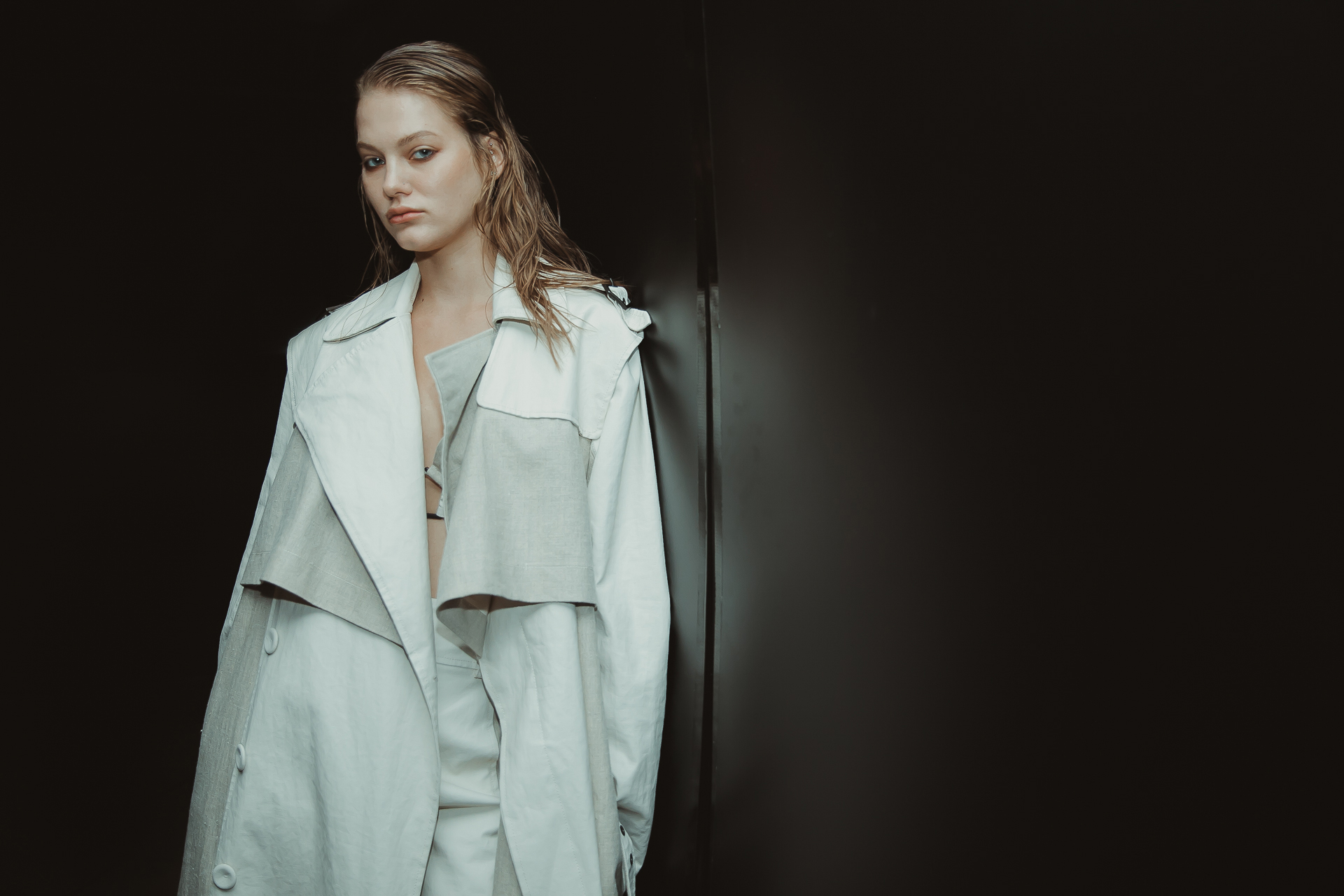 The wide and comfortable volumes of the coats go hand in hand with skin-tight shapes where draperies and asymmetries evoke the sensuality of the body.
