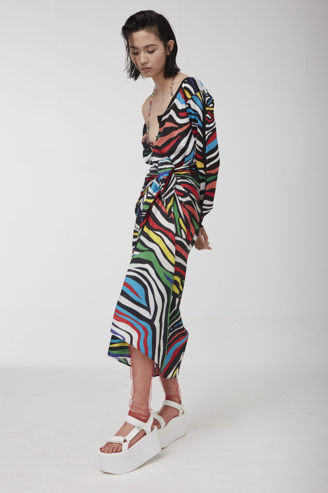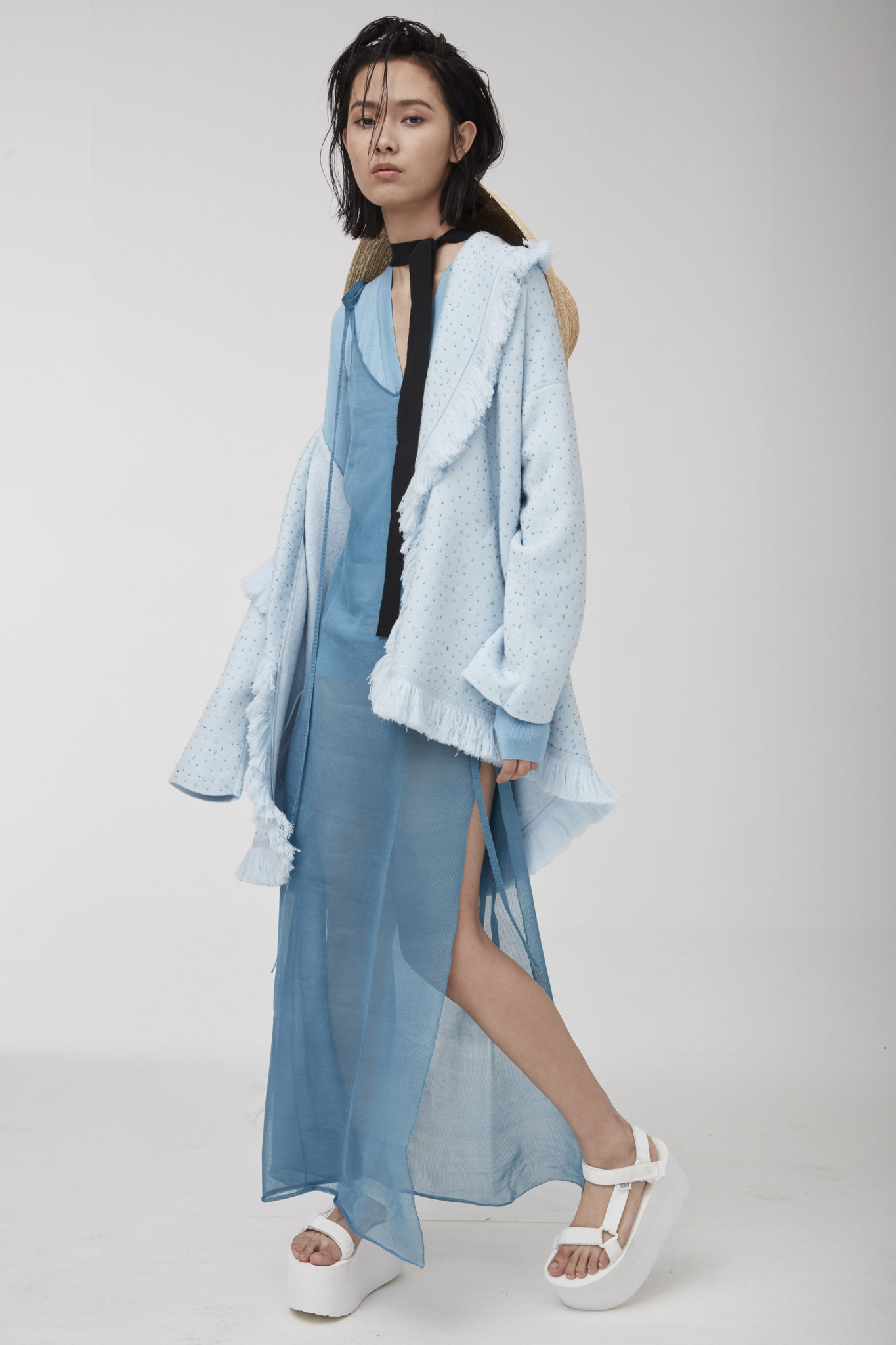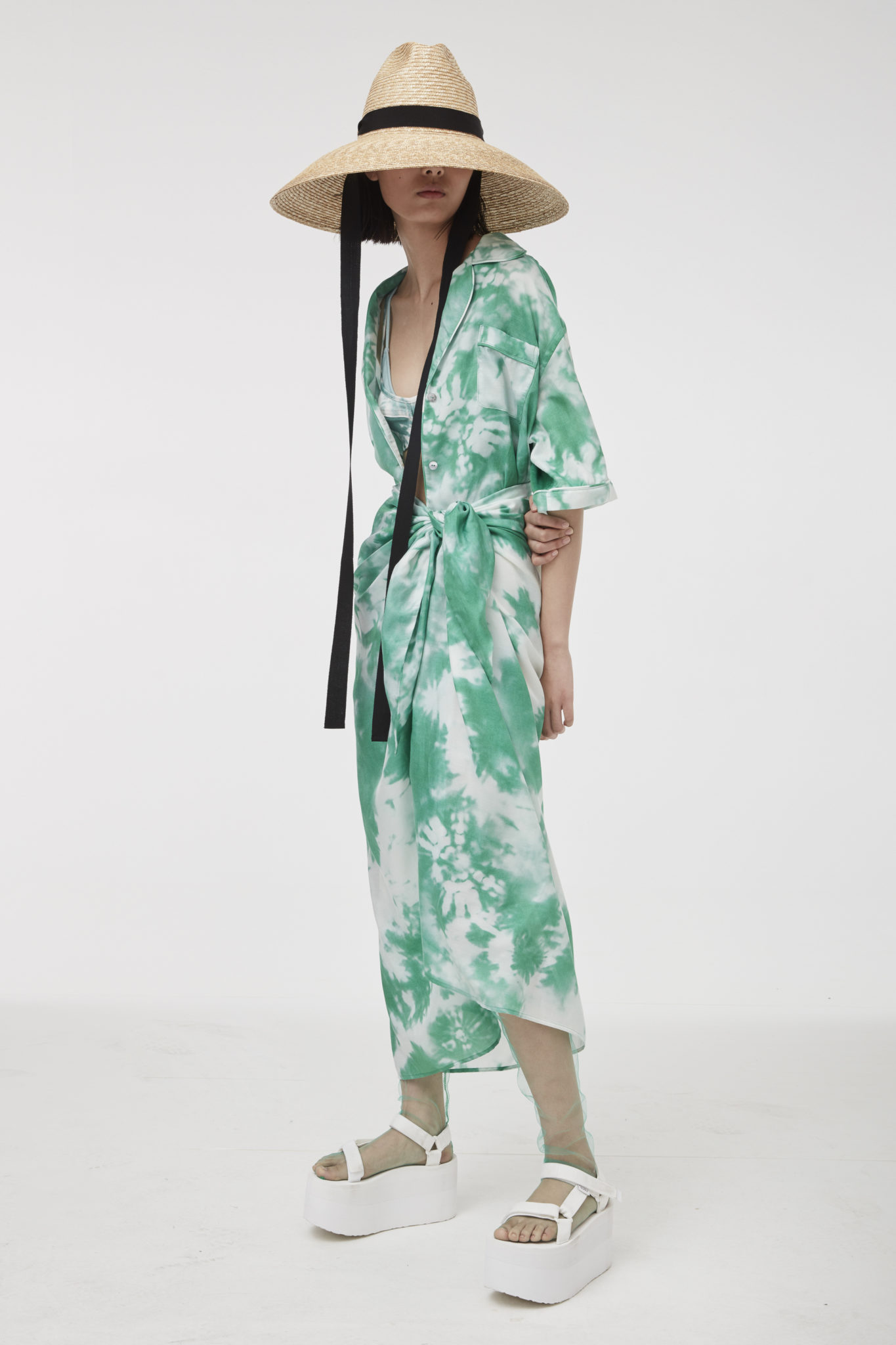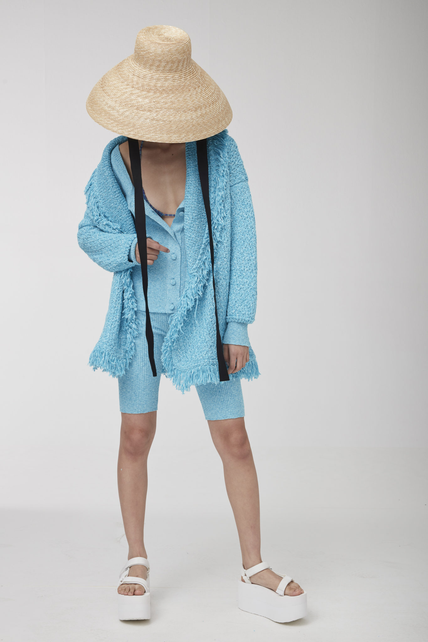 Charming light effects pop up on the lightweight wrap-around cardigans, micro tops matched with cycling shorts, as well as on the knitted pajama sets and silk slip dresses.