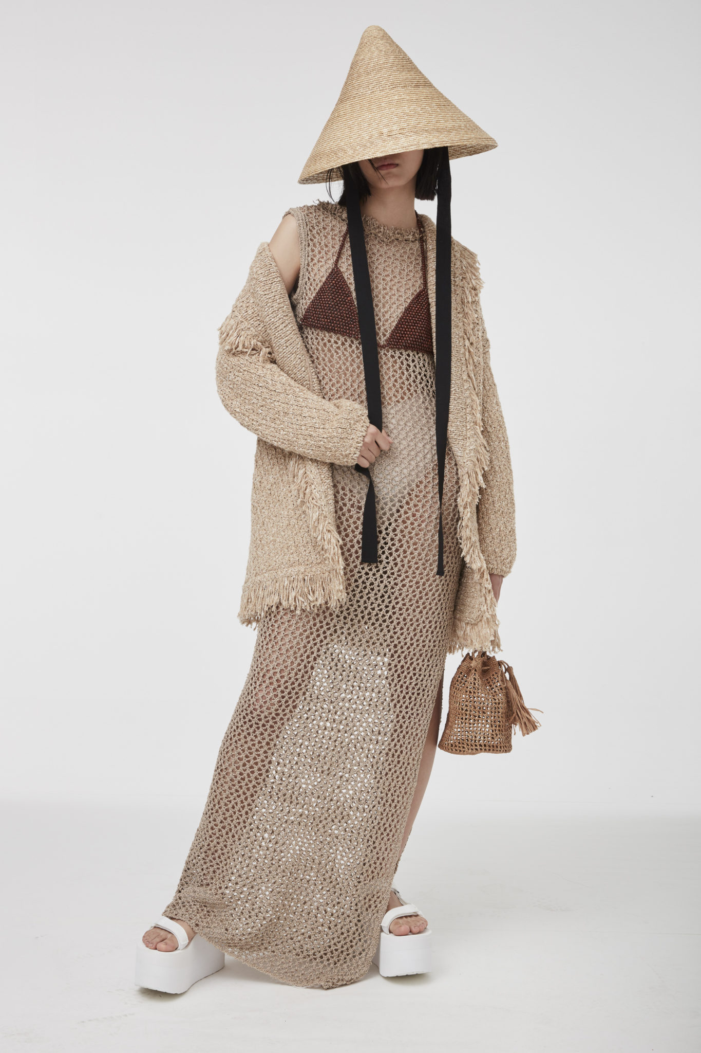 For the Spring/Summer 2020 presentation, hosted on Sept. 22 at the Casa degli Atellani venue, the brand designed a special set up where sculptural straw vases stole the spotlight. The artful pieces were supplied by fair trade company Babatree, based in Ghana, which employees over hundred artisans, guaranteeing them a future through dignified work.