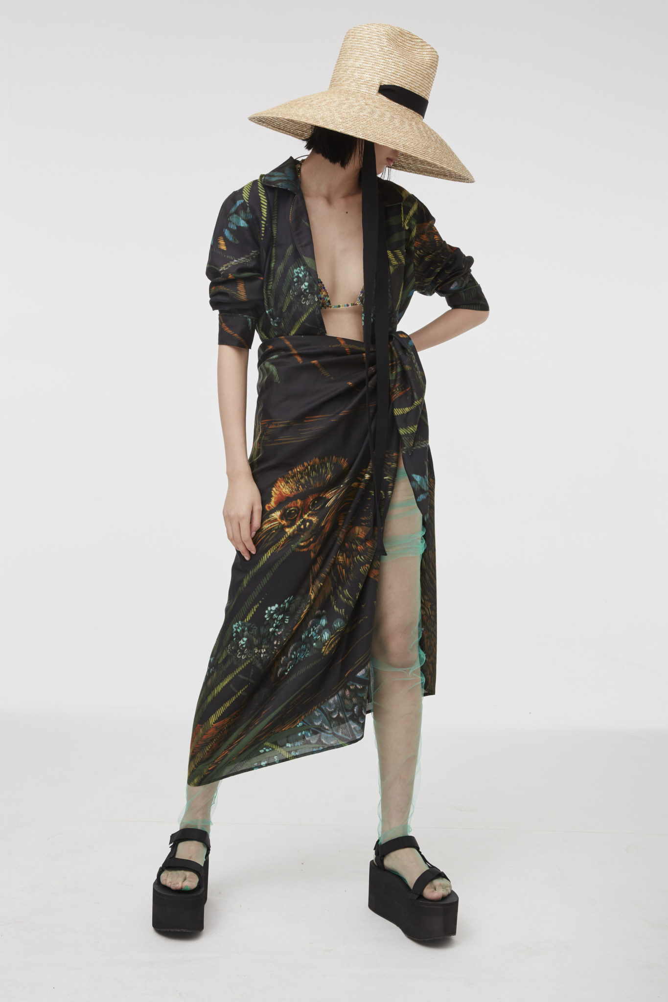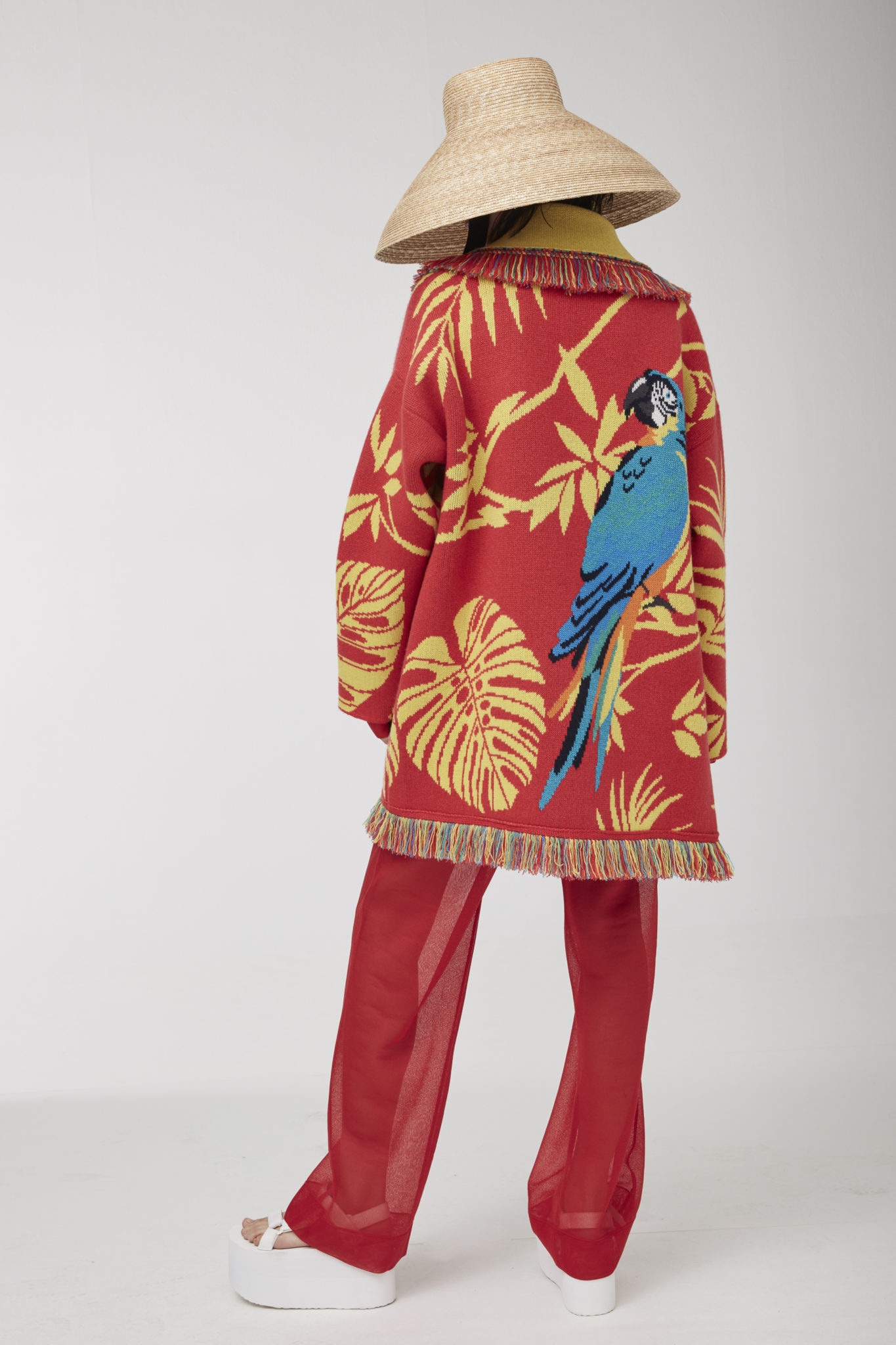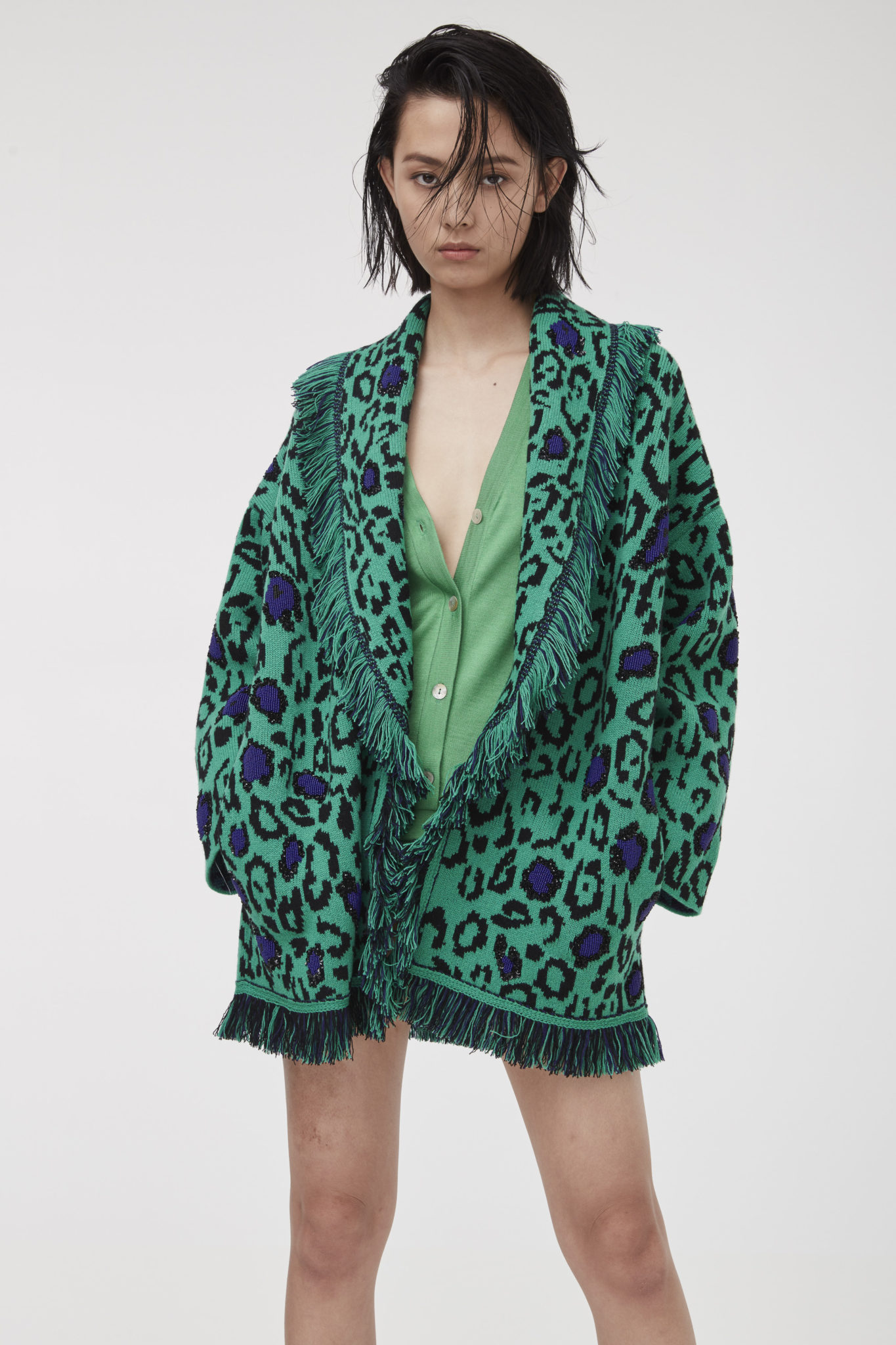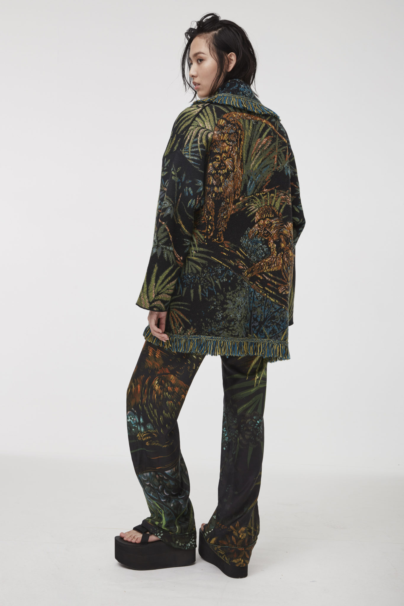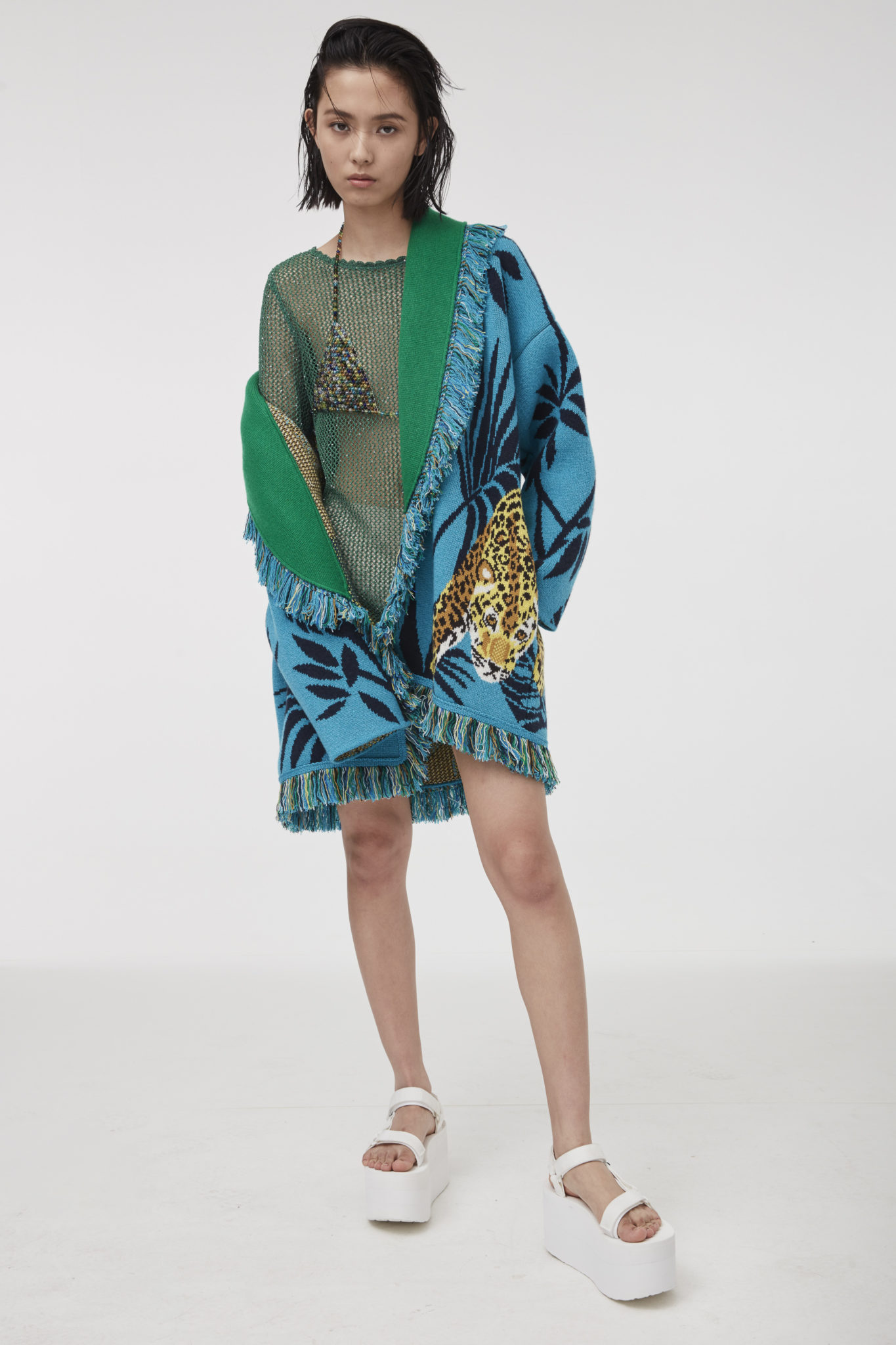 Alanui’s ode to summer continues with a joyful jungle vibe, bringing flamboyant fun to the collection. The vibrant atmosphere of the rainforest is injected into the luxurious Icon cardigans, where zebra and jaguar stripes, multicolor parrots and lush foliage, as well as little monkeys, are rendered with intricate knitwear techniques, embroideries and prints. Expressing its love for Mother Earth, Alanui decided to donate some of the proceeds from the sales of these jungle-inspired cardigans to organizations protecting the Amazonian rainforest.