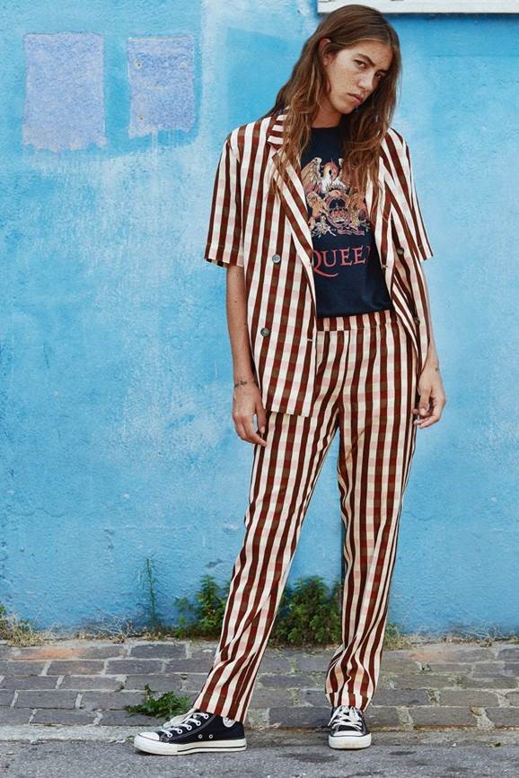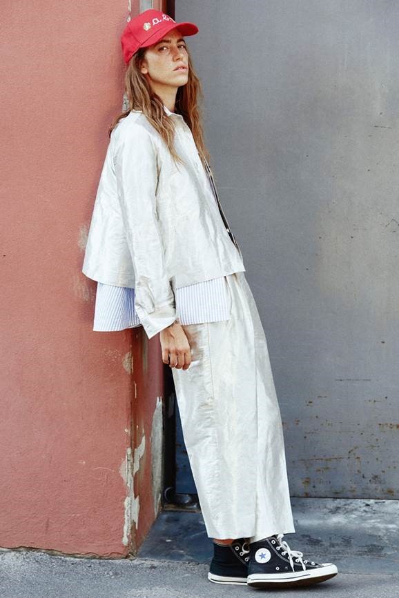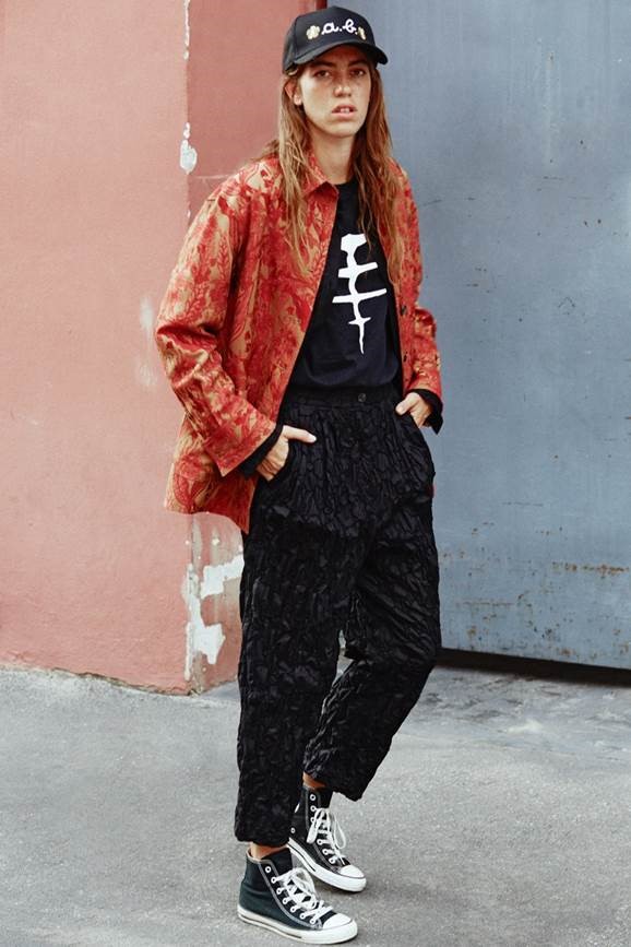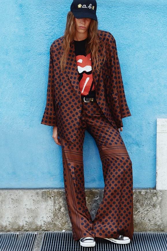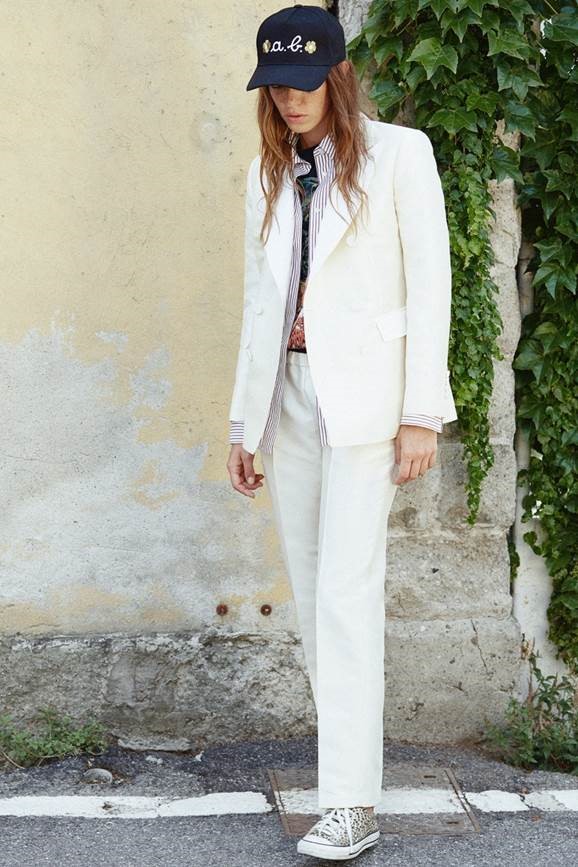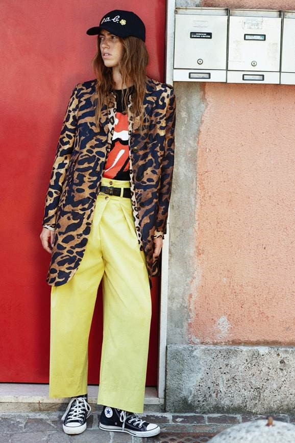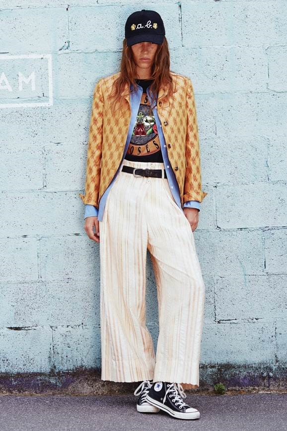 Rock&Work Des citations sans aucun lien (apparent) : du rock au workwear. Les années 70, celles des Rolling Stones et de l’European Tour de 1973. Car il s’agit également de confessions. Alberto Biani et ces escapades pour assister à quelques-unes de ces 22 dates. Puis les albums, écoutés en boucle, et les vidéos d’aujourd’hui. Mick Jagger, à l’époque, avec ses vestes archi longues ou archi courtes, puis soudainement Michael Jackson avec Billie Jean, son smoking et ses pantalons archi serrés. Tous deux des inspirations énergiques, pour diverses raisons, mais conduisant au final à un résultat identique : une élégance naturelle, en dépit des mélanges jugés à cette époque de mauvais goût. Il s’agissait plutôt d’erreurs intelligentes. Ainsi, on se retrouve à nouveau dans l’océan des dichotomies, des taches et des excès. Tout cela avec une même clé stylistique et précise. Une essence virile qui devient féminine à l’extrême. Un smoking protagoniste, car il y a bien sûr les stars. Mais pas seulement. Une synthèse extrême de l’élégance. Une désacralisation du smoking, c’est un jeu. Un hommage impératif. Le plus gracieux ? Celui en satin duchesse blanc. Le prix ? En tissu de cravates. Sur scène, voici LE workwear… de star. Les cargos se transforment en précieuses histoires grâce à ce jacquard de viscose et de coton qui les rend uniques et chics. Et ces nouveaux pantalons toujours un peu trendy, les Chaplin : amples et classiques mais avec des poches de jeans. En vérité, une collection comme l’on n’en a jamais vu, aucune préférence en matière de vêtements : le look est une question de personnalité, de liberté. Nous y retrouverons par conséquent des jupes, des pantalons, des liquettes, des vestes et des tuniques à parts égales. Démocratie d’utilisation. Superpositions autorisées. Impressions des plus farfelues, contraste de taches, dessins d’archive style années 50, fleurs, lignes et pois. Une palette de couleurs variée : du vermillon au fuchsia, en passant par le chair, mais aussi du citron vert, du bleu clair, du noir et du tabac. Des ensembles en Lurex or et argent tout aussi surprenants. Après tout, le groupe de Biani jouerait-il uniquement du rock ?