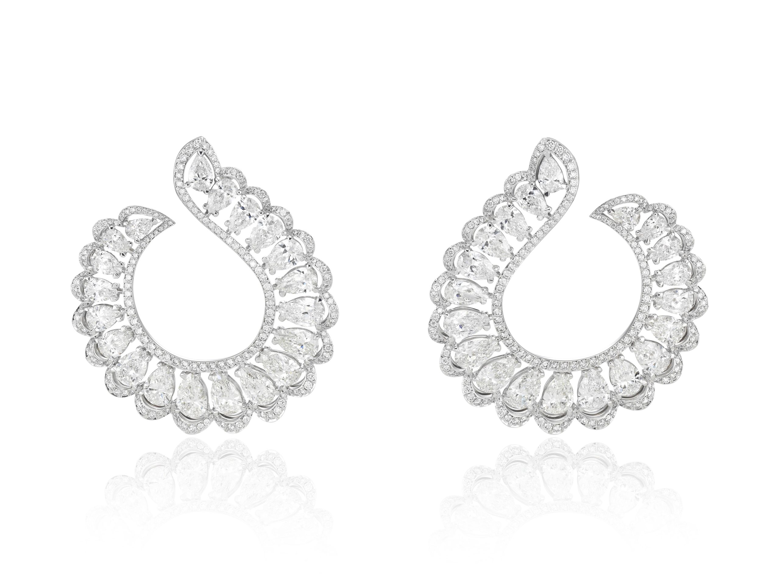 Neelam Gill avait sélectionné une paire de boucles d’oreilles issue de la Collection Precious Lace en or blanc 18 cts serti de diamants taille poire (13,76 cts) et de diamants, une bague issue de la Collection Green Carpet en or blanc 18 cts certifié Fairmined serti de diamants taille marquise (2,9 cts) ainsi qu’une bague issue de la Collection L’Heure du Diamant en or blanc 18 cts serti de diamants.