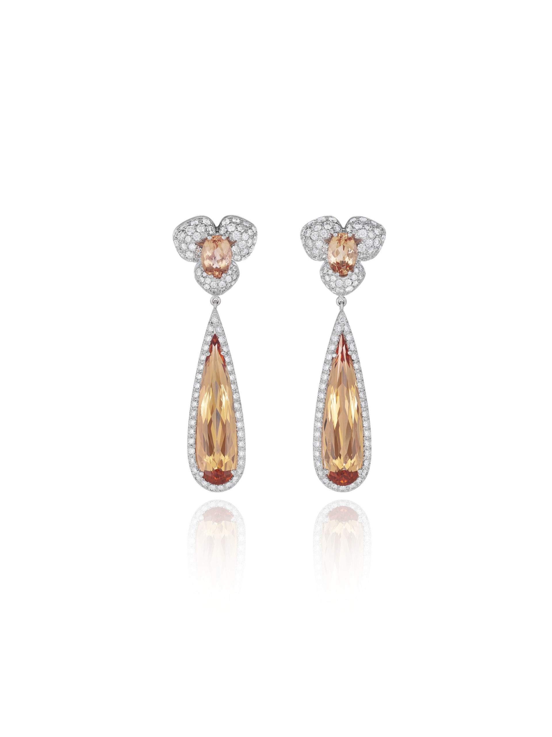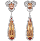 Alice Jeffrey avait choisi une paire de boucles d’oreilles issue de la Collection Temptation en or blanc 18 cts serti de topazes taille poire (11,86 cts), de topazes taille ovale et de diamants ainsi qu’une bague issue de la Collection Haute Joaillerie en or blanc 18 cts serti d’un grenat (4,89 cts) et de diamants.