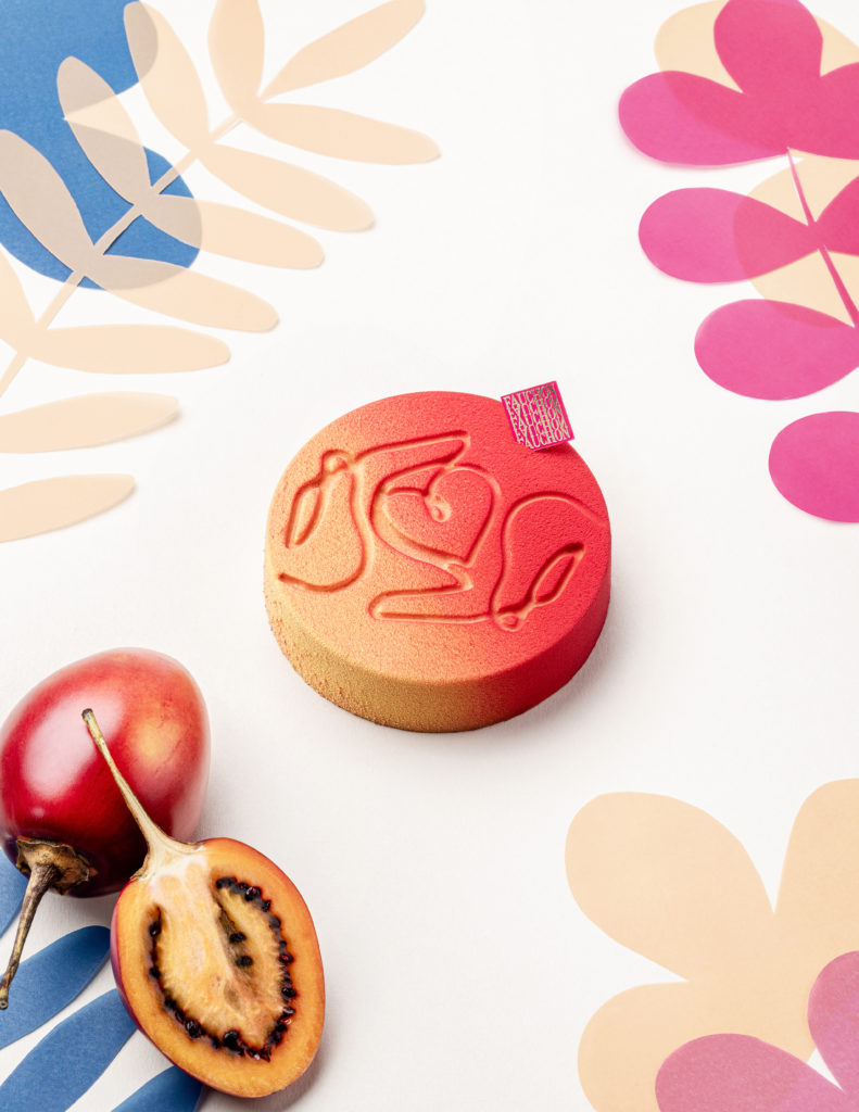 Pour célébrer la Saint-Valentin, le Chef François Daubinet a imaginé un entremets où fusionnent l’amour, l’art et la gourmandise. Composé d’un biscuit moelleux amandes et citron jaune, garni d’une compotée tamarillo-passion et d’un croustillant aux amandes, le tout délicatement recouvert par une mousse onctueuse mangue, passion, vanille, cette pâtisserie fera chavirer les cœurs des plus gourmands.