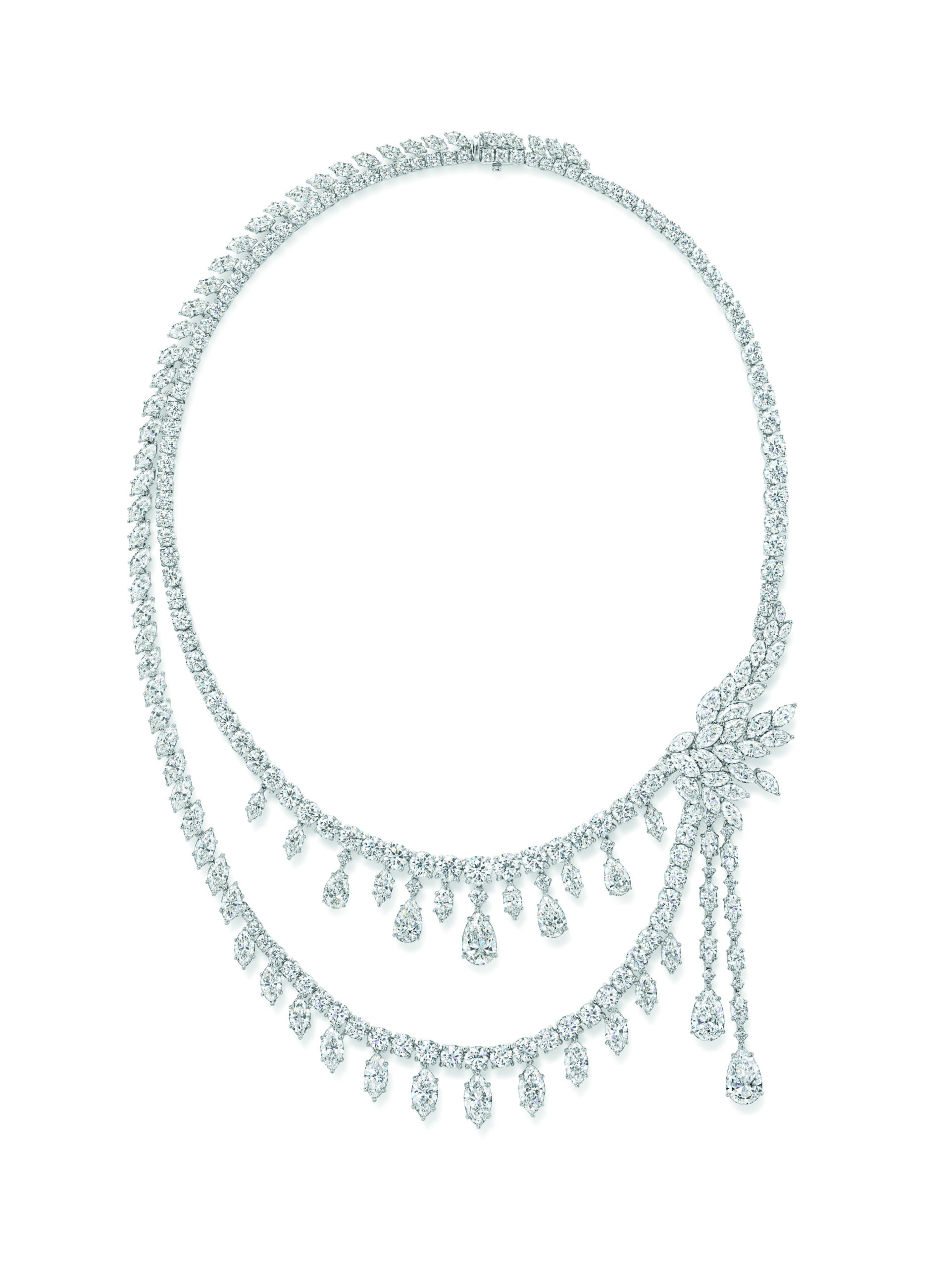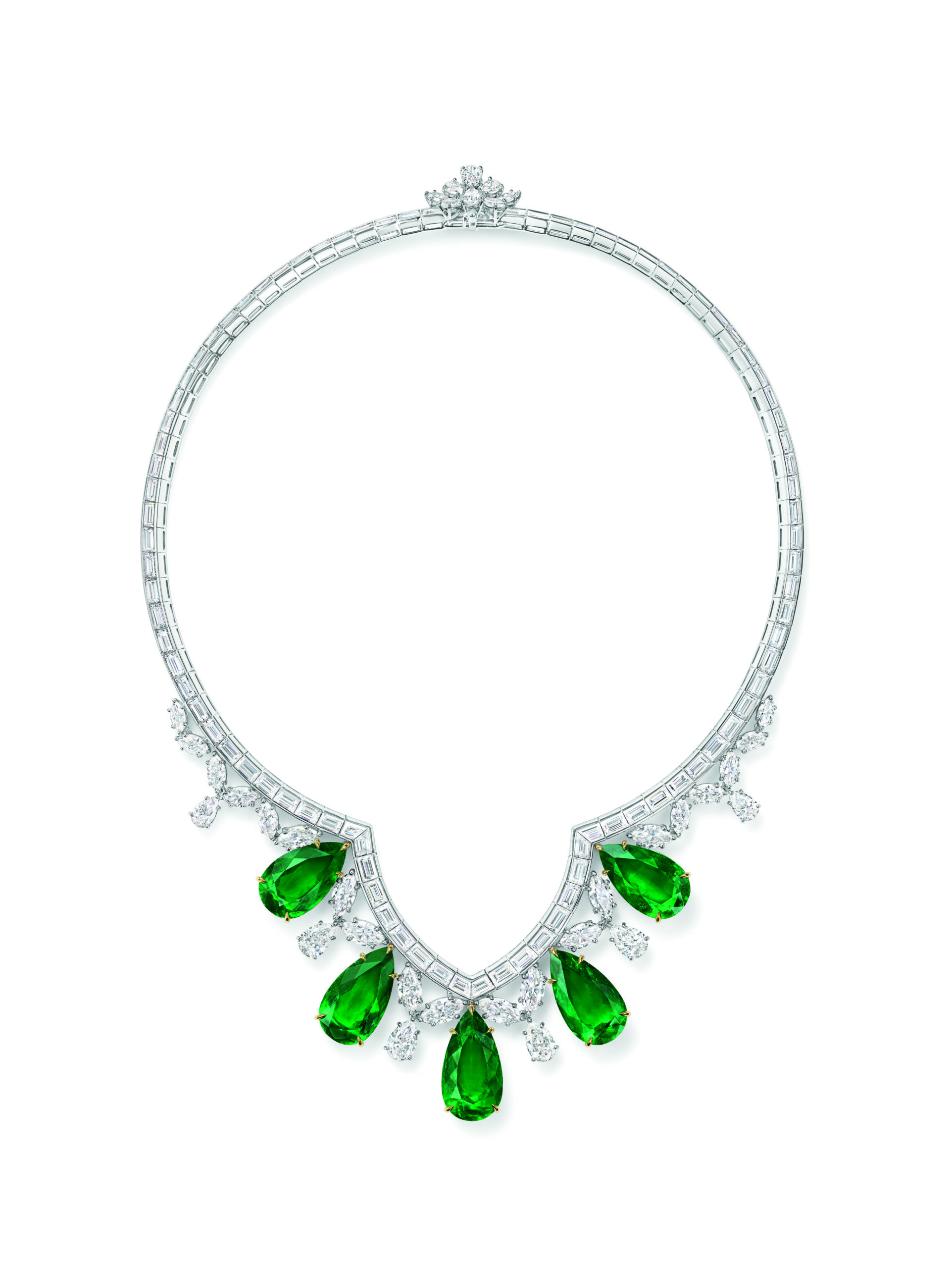 Les premiers locaux de M. Winston, au nom de la société Harry Winston, Inc., étaient situés au 7 East 51st Street, juste en face de la célèbre cathédrale Saint-Patrick de New York. Chaque jour, caressé par les rayons de ses bijoux extraordinaires, Harry Winston pouvait profiter d’une vue dégagée sur l’impressionnante construction de style néo-gothique. À l’image des proportions parfaites, des fabuleux détails artisanaux et de l’architecture exceptionnelle de la cathédrale Saint-Patrick, le collier et les boucles d’oreilles Cathedral soulignent la beauté exquise des émeraudes taille poire et rendent hommage au design Winston, sous sa forme la plus pure.