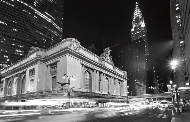 - Busy traffic and Grand Central Station at night, New York, USA