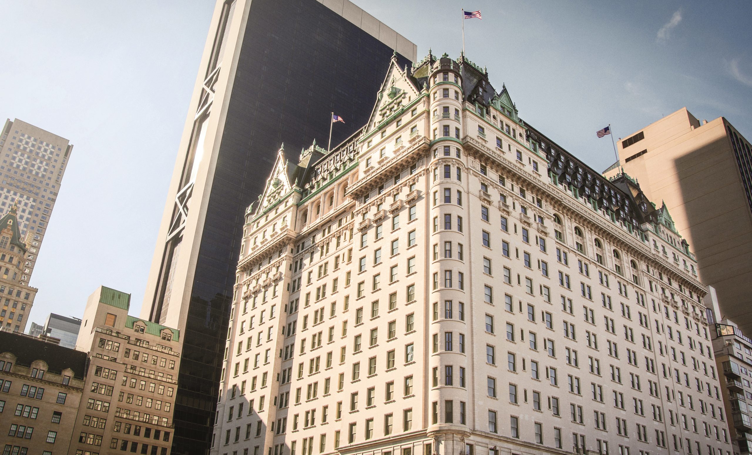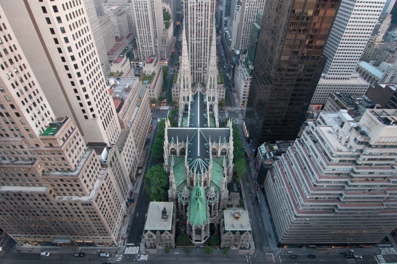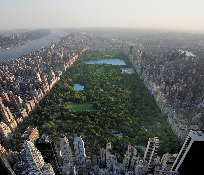 - Central Park aerial view, Manhattan, New York; Park is surrounded by skyscraper