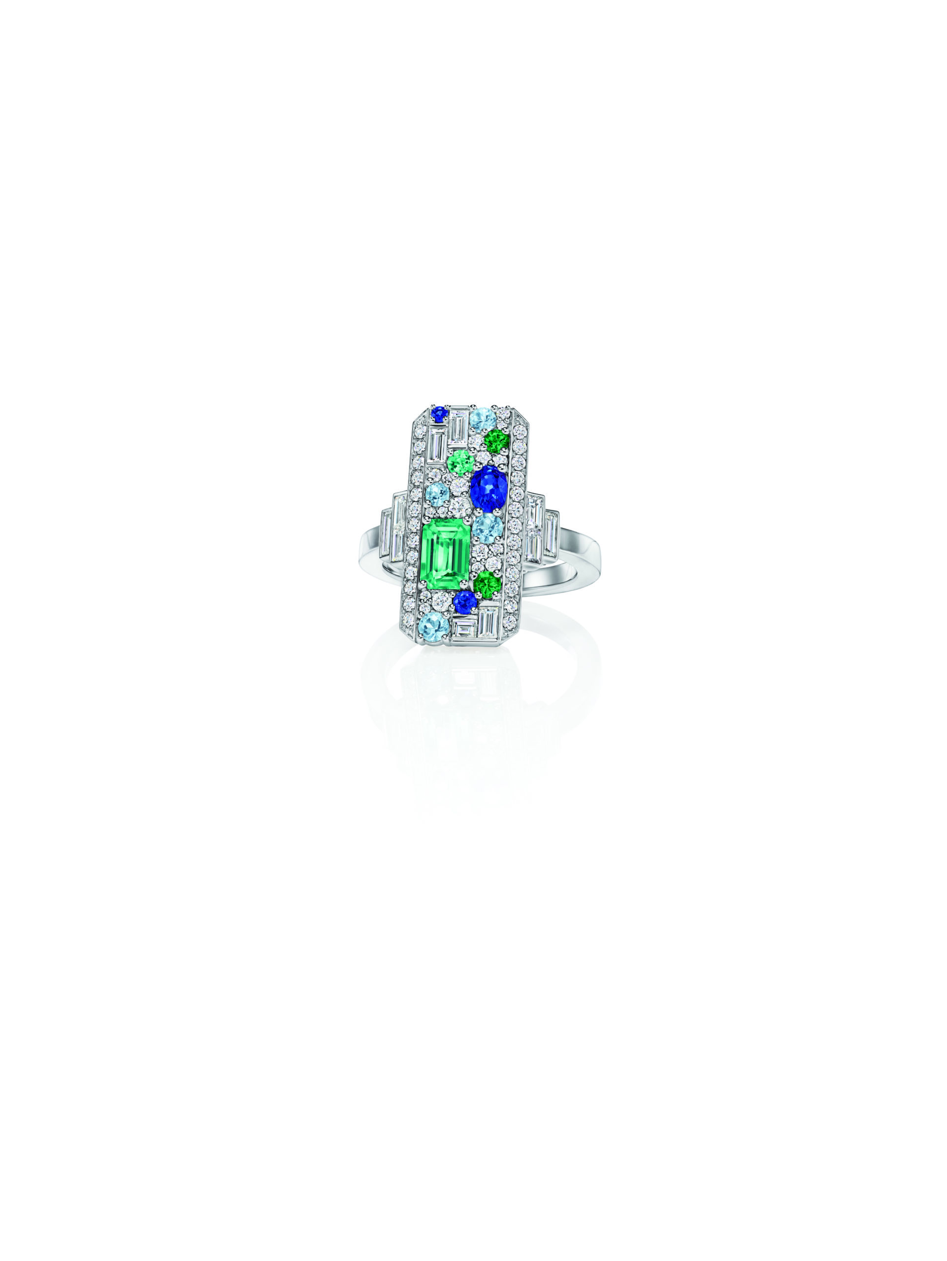 Harry Winston a consacré sa vie aux joyaux rares et au développement de son entreprise éponyme. Accompagné de ses principaux designers, il dédiait des heures à la création de bijoux extraordinaires et uniques. Situé à quelques pas de son bureau, le plus grand parc de New York, Central Park, est un lieu où M. Winston et ses designers allaient souvent se ressourcer. Ils aimaient y contempler la beauté de la nature pour trouver l’inspiration. Les boucles d’oreilles, les bracelets et la bague Central Park Mosaic sont rehaussés d’émeraudes, de saphirs, de diamants et d’aigues-marines, dont la disposition rappelle les paysages extraordinaires du célèbre espace vert de la ville.