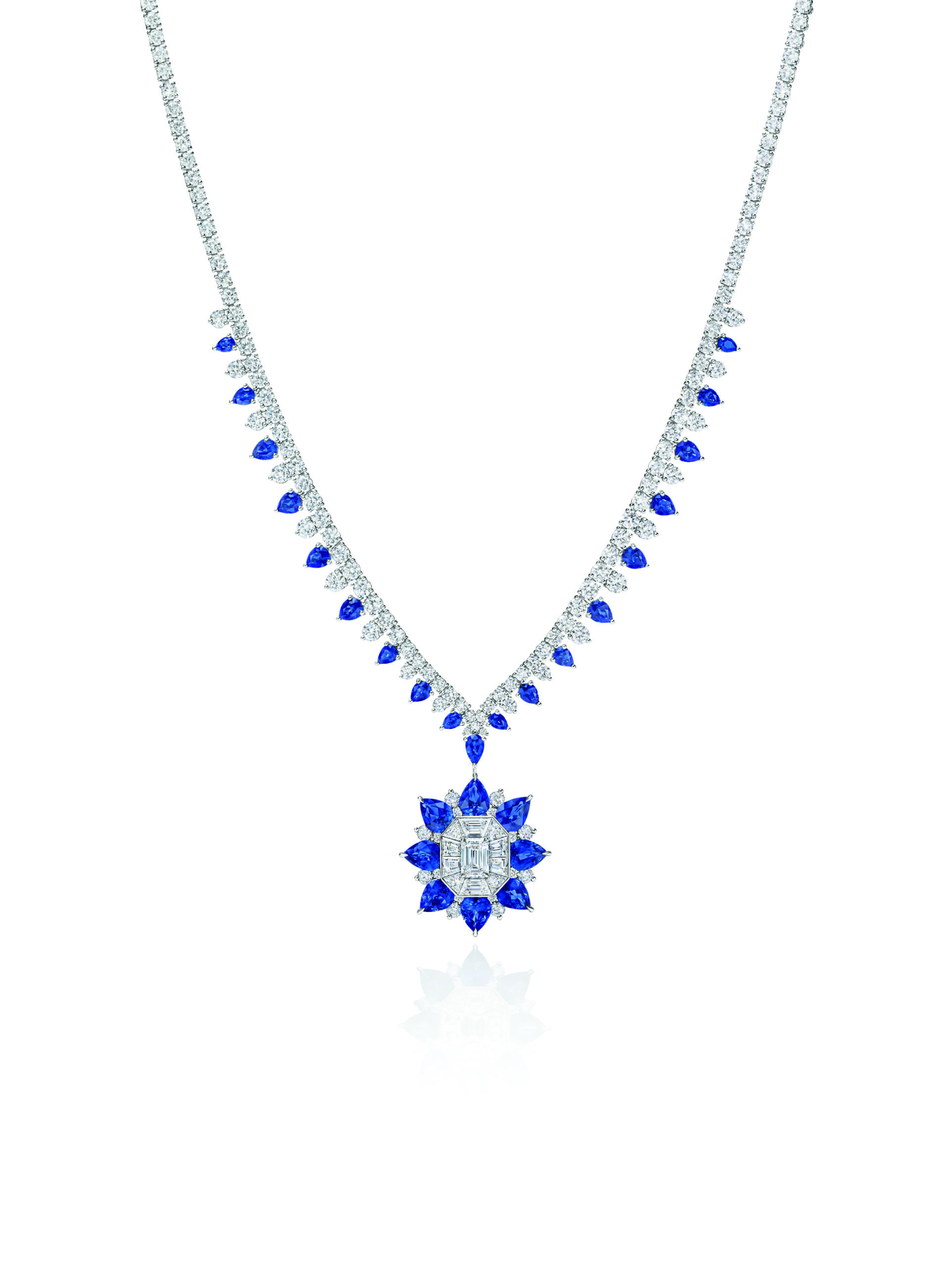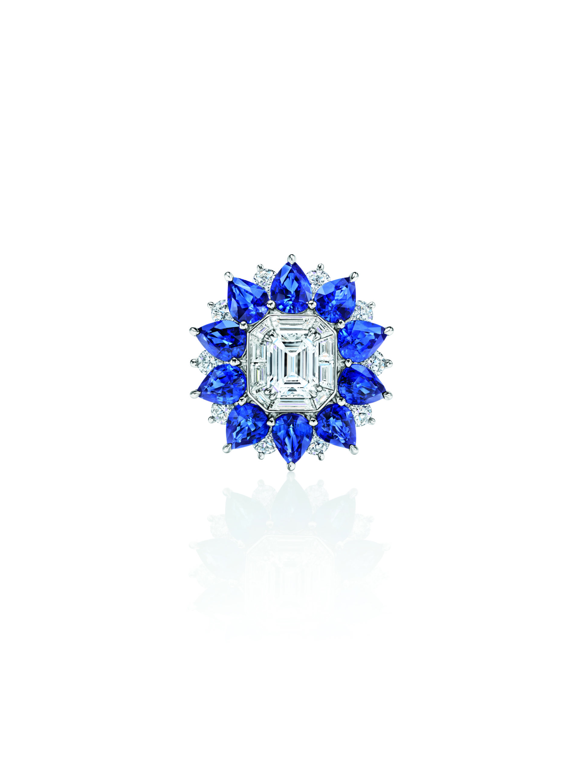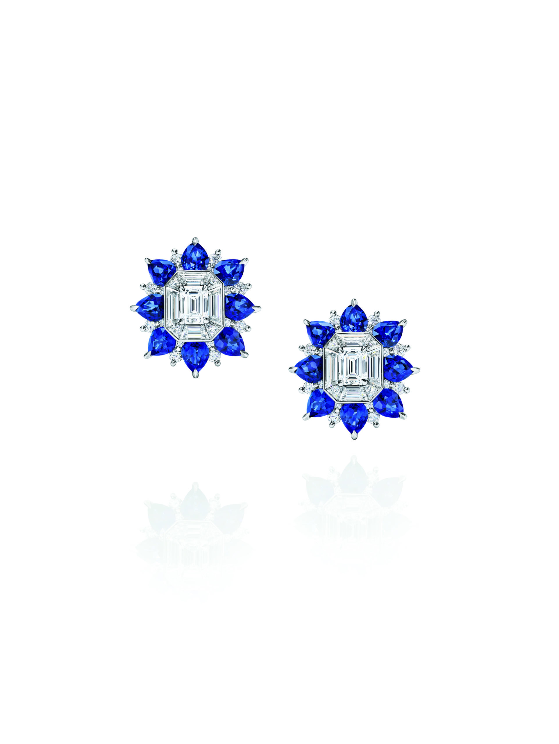 Pour Brownstone qui est un hommage aux extraordinaires brownstones de l’Upper East Side où Harry vit le jour, les diamants taille baguette, brillant et marquise rehaussés de pierres précieuses carrées colorées sont disposés dans un motif géométrique, qui rappelle l’architecture imposante de Manhattan. Disponible dans deux palettes de couleurs – turquoise pain de sucre avec des saphirs bleus et un mélange de saphirs bleus et jaunes – la collection comprend un long collier avec pendentif et des boucles d’oreilles assorties.