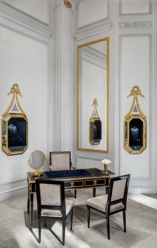 En mars 1960, Harry Winston déménage sa société au 718 Fifth Avenue. À cette période, l’architecture de New York est marquée par une esthétique minimaliste. Toutefois, Harry adopte une approche visionnaire : il imagine un bâtiment de style français du XVIIIe siècle comme l’écrin idéal pour exposer ses collections et accueillir ses clients du monde entier. Durant la phase de conception de son salon, Harry veille à n’omettre aucun détail. Du sol au plafond, chaque élément est réalisé avec une perfection digne des créations de la Maison. 718 rend hommage au charme historique et aux ravissants détails du célèbre salon Harry Winston de New York. La collection de colliers, boucles d’oreilles et bagues en diamants et saphirs 718 Marble Marquetry s’inspire des détails du marbre noir et blanc du célèbre atelier Harry Winston. La série de créations de Haute Joaillerie 718 Chandelier, tout en diamants, capture la brillance éclatante du lustre en bronze doré suspendu au plafond haut, qui illumine avec splendeur le salon. Évoquant la taille préférée de Harry Winston ainsi que les sept vitrines dorées le long des murs du salon, les créations 718 Emerald Vitrine associent des émeraudes de Colombie à un bouquet de diamants taille baguette, marquise et brillant.