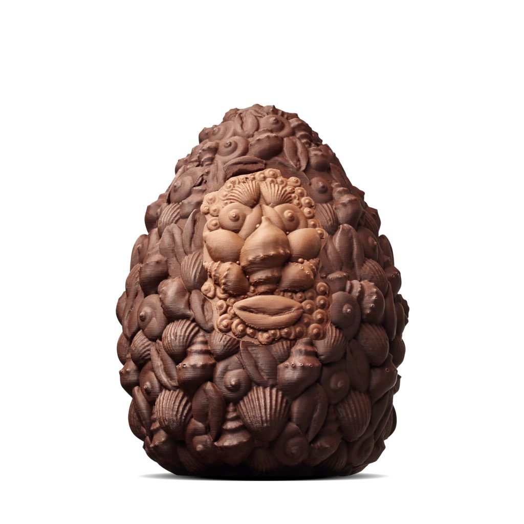 Chacun des œufs est composé de deux chocolats mettant en valeur un visage à la manière des œuvres extravagantes d’Arcimboldo.