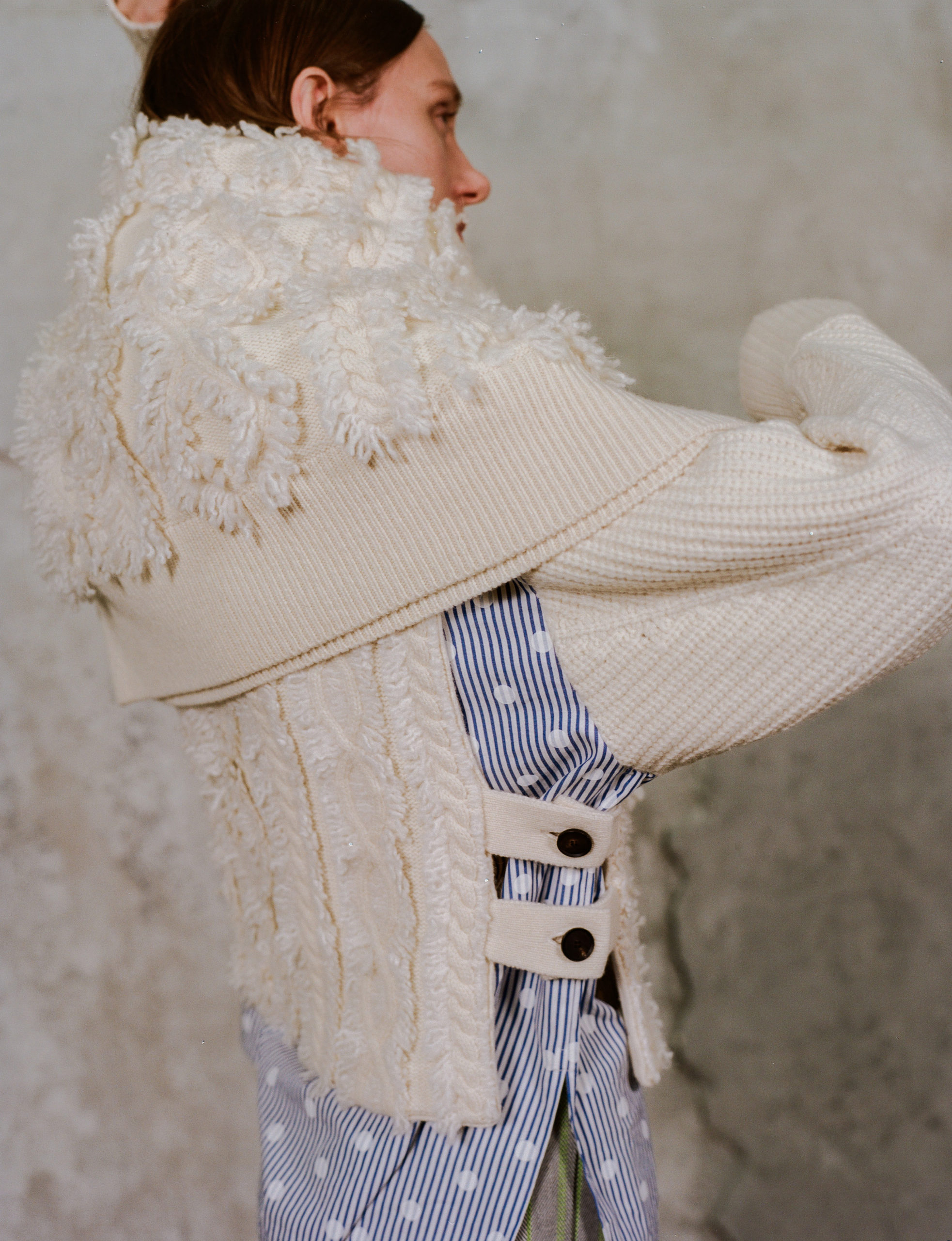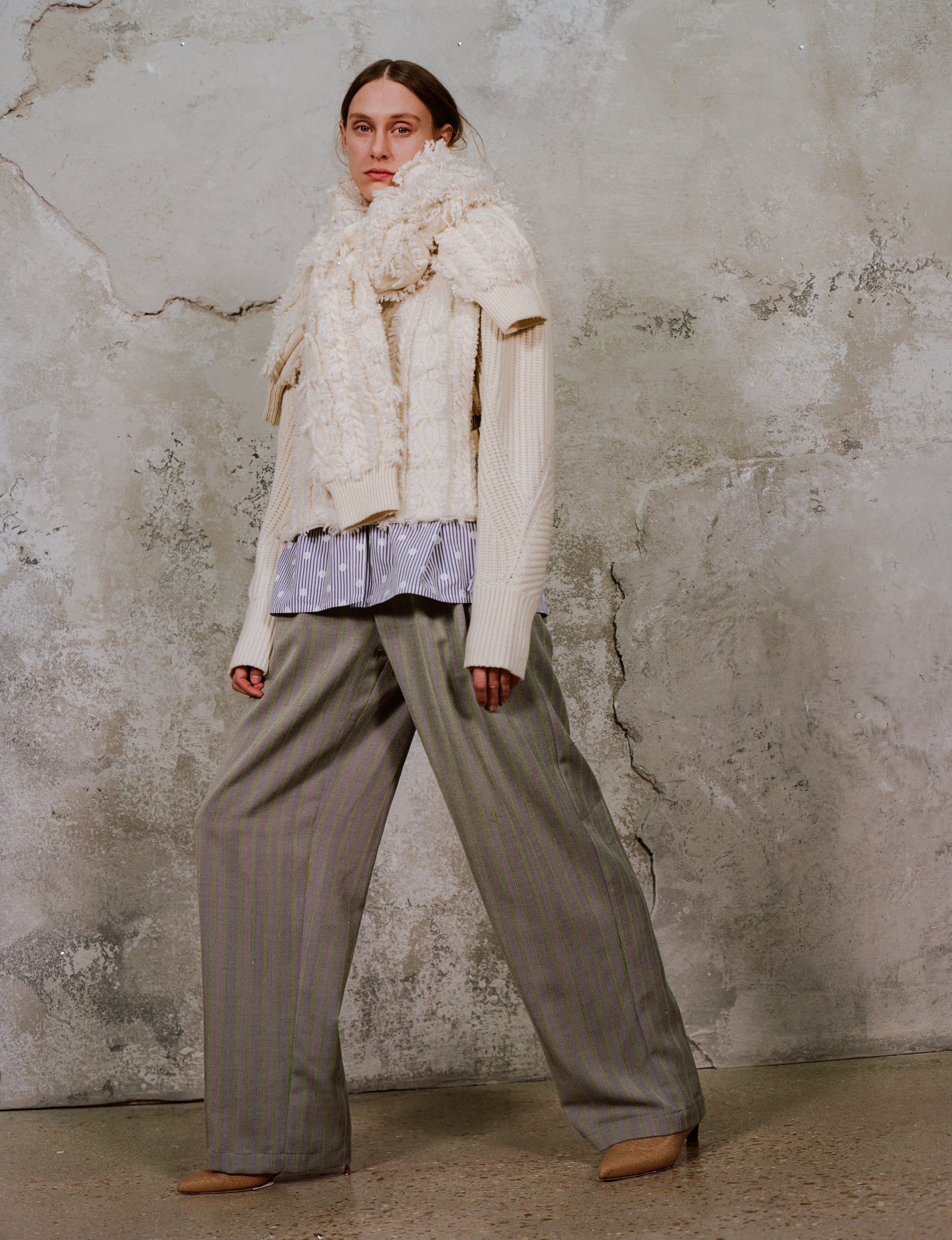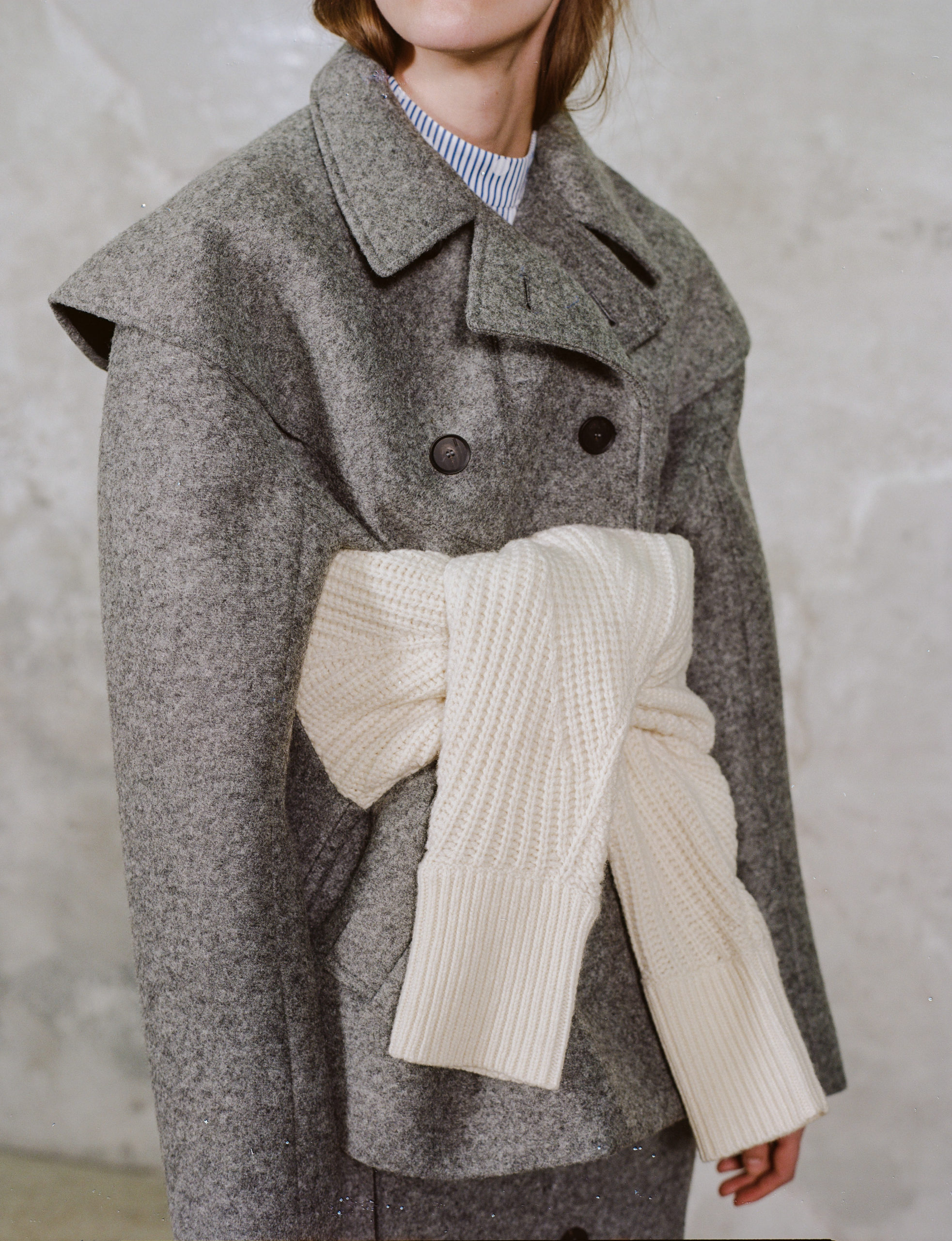 La maille est quant à elle toujours omniprésente. Cette saison, elle se fait fourrure sur un manteau ou une veste, nouée à la ceinture ou en écharpe.